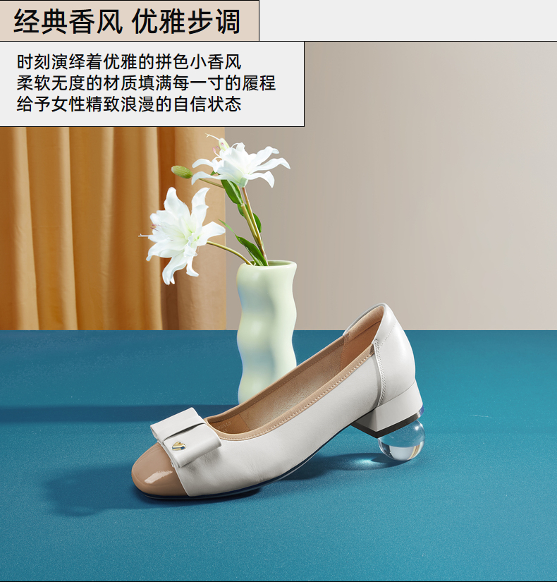 千百度扣饰漆皮浅口单鞋女粗高跟鞋通勤不累脚晚晚鞋A25490903