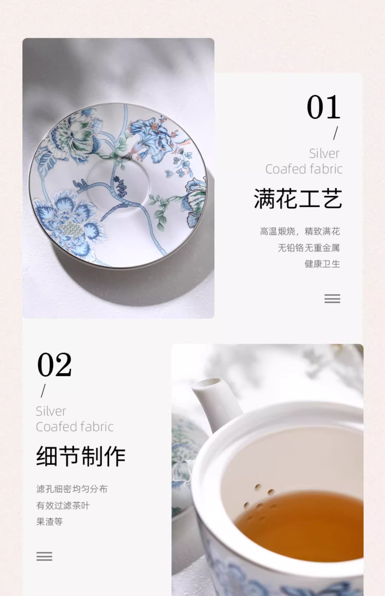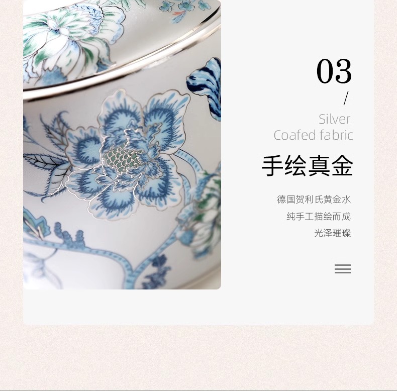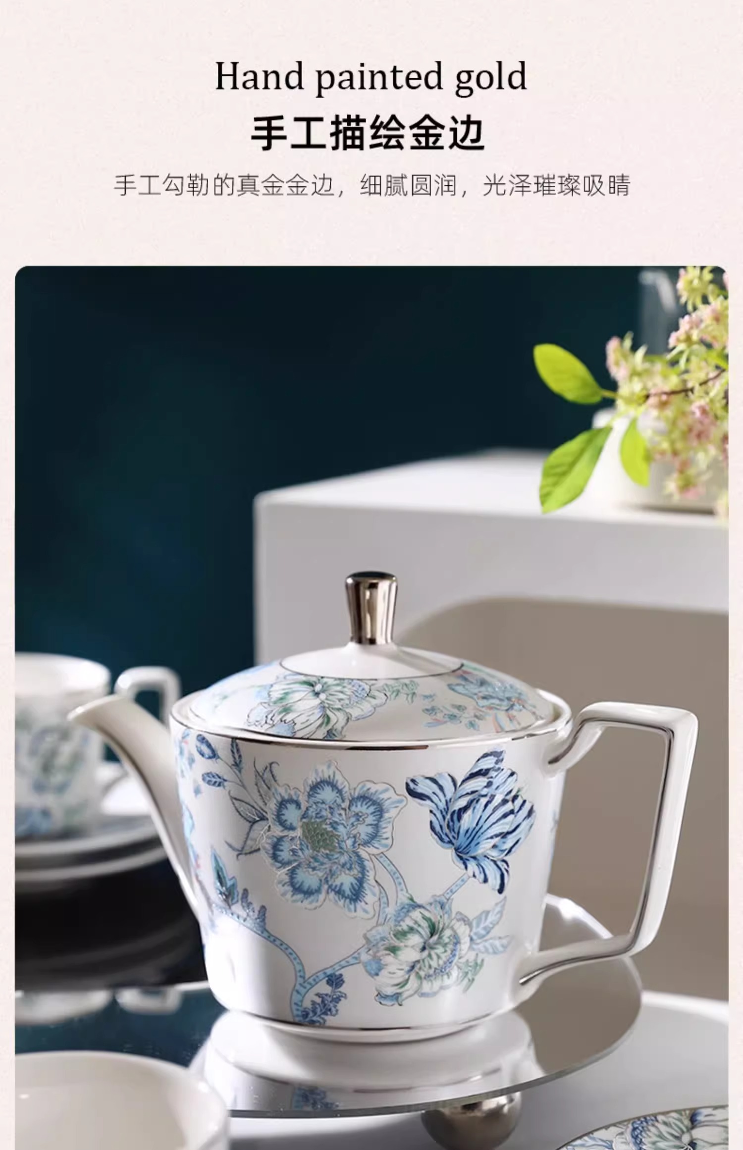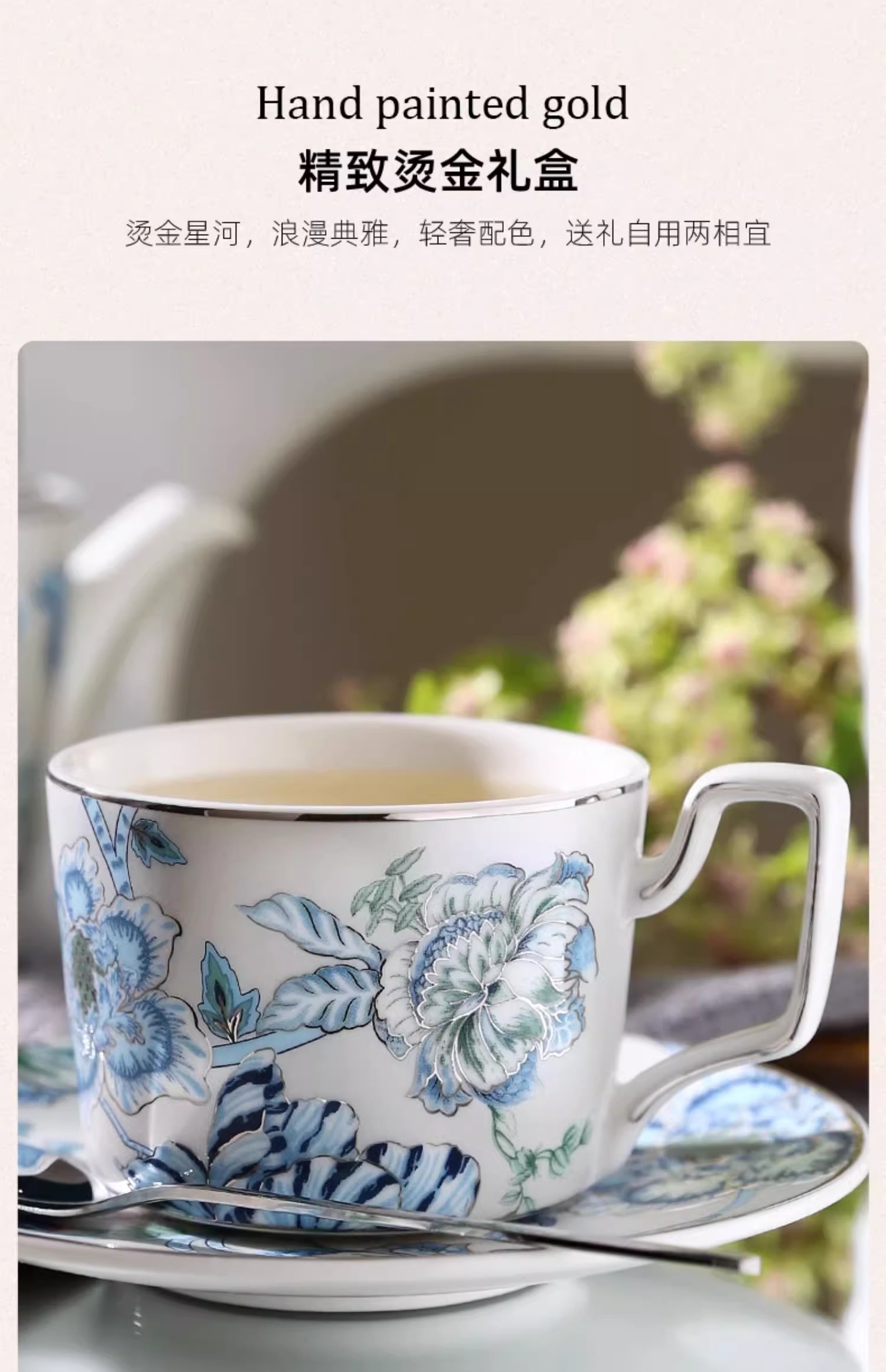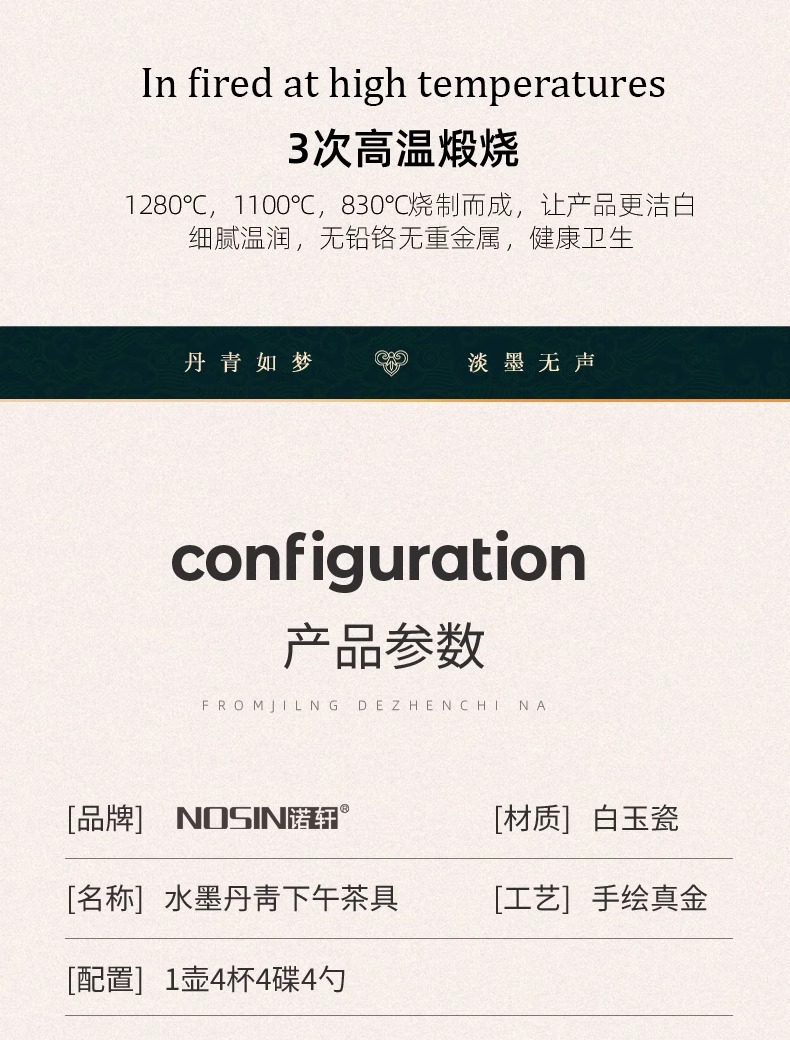 创意家用中式水墨青花下午茶陶瓷茶具套装轻奢整套咖啡具咖啡杯碟诺轩水墨丹青套装4杯碟勺1壶(铂金灰)