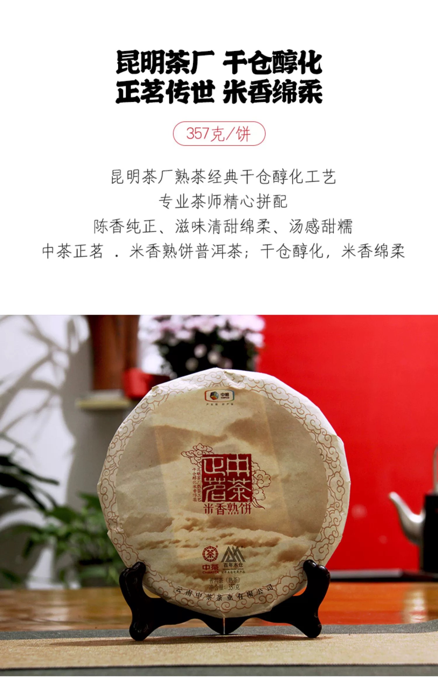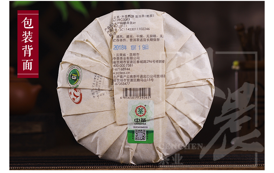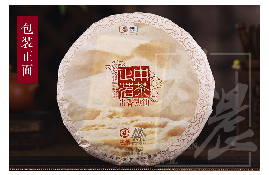 中粮-中茶牌2018年中茶云南正茗米香普洱熟茶 357克/饼 /云南干仓直发