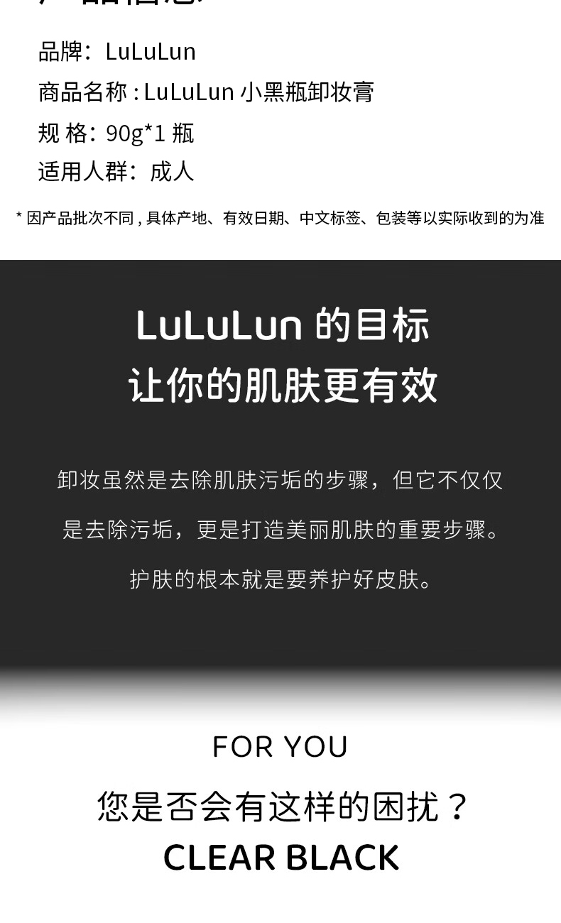 LuLuLun小黑瓶卸妆膏90g 日本进口