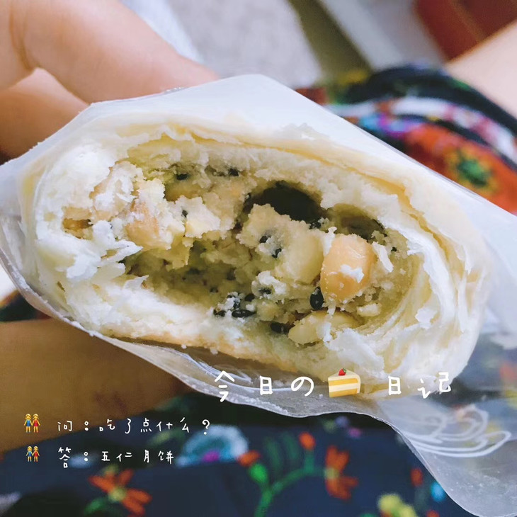 今年的伍仁月饼我们又升级了,添加了榛子仁和夏威夷果仁,还有原来的黑芝麻、南瓜子、巴旦木、花生、腰果、瓜子、核桃仁、黑加仑干、葡萄干、蔓越莓干,一共12种坚果果干,依然是胡姬花花生油调馅,小包酥手法开酥,只为了给您呈现最好的口感。