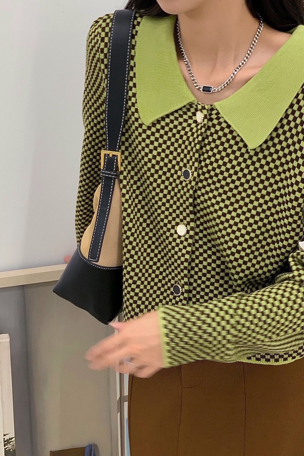 amadella 绿色棋盘格翻领针织外套 14364