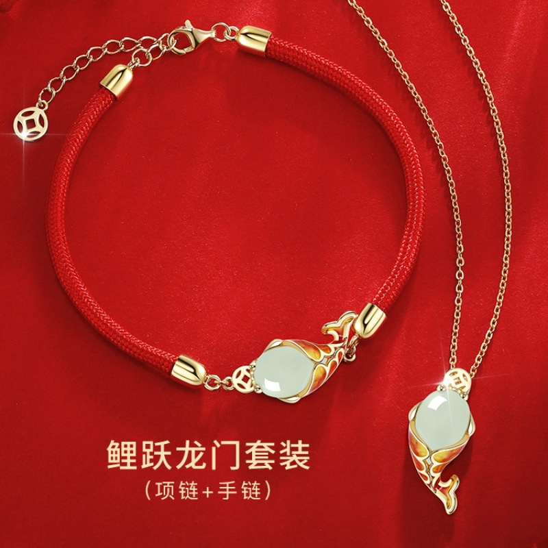 「仅19.9到手!鲤跃龙门」锦鲤手链女2024新款小众设计感本命年红色手绳手饰送女友时尚饰品
