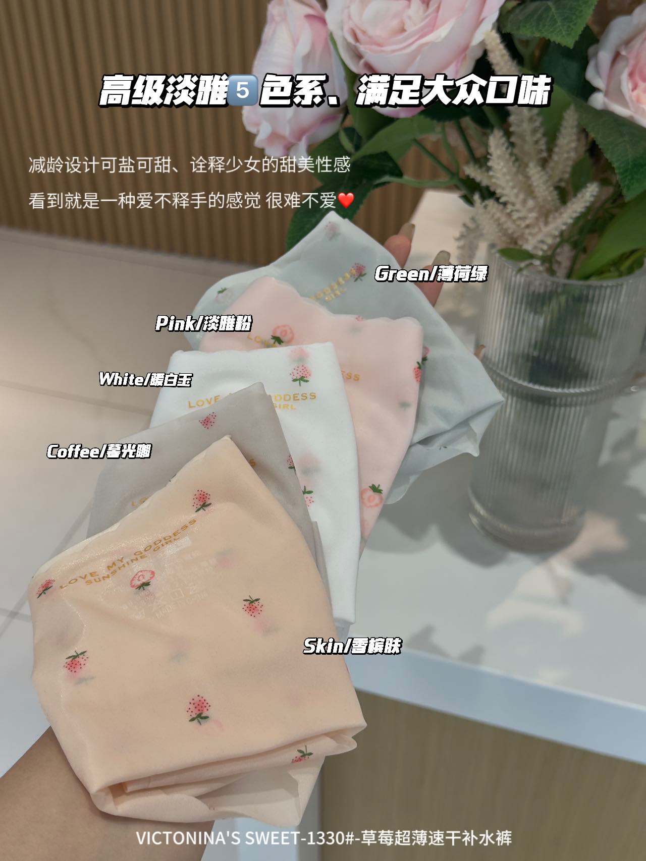 【新品福利!5条/礼盒装!】纯粹的草莓,轻薄速干,无痕贴身。舒适亲肤补水保湿五色随心,让你在夏日别样清新美。