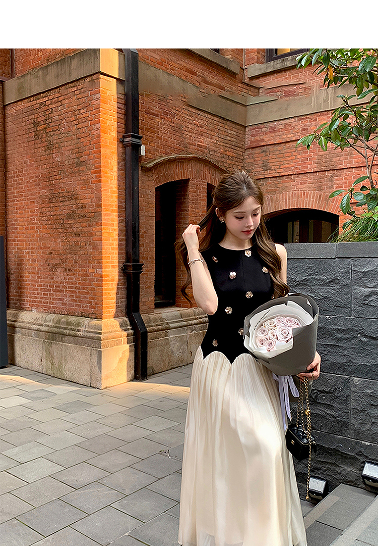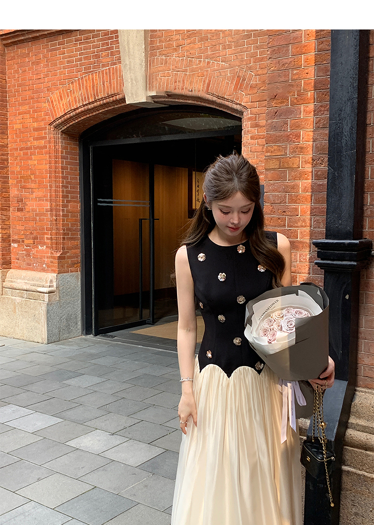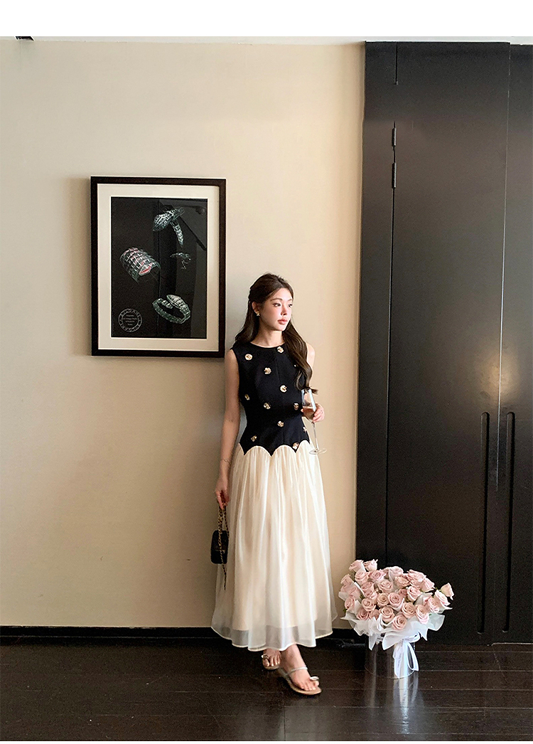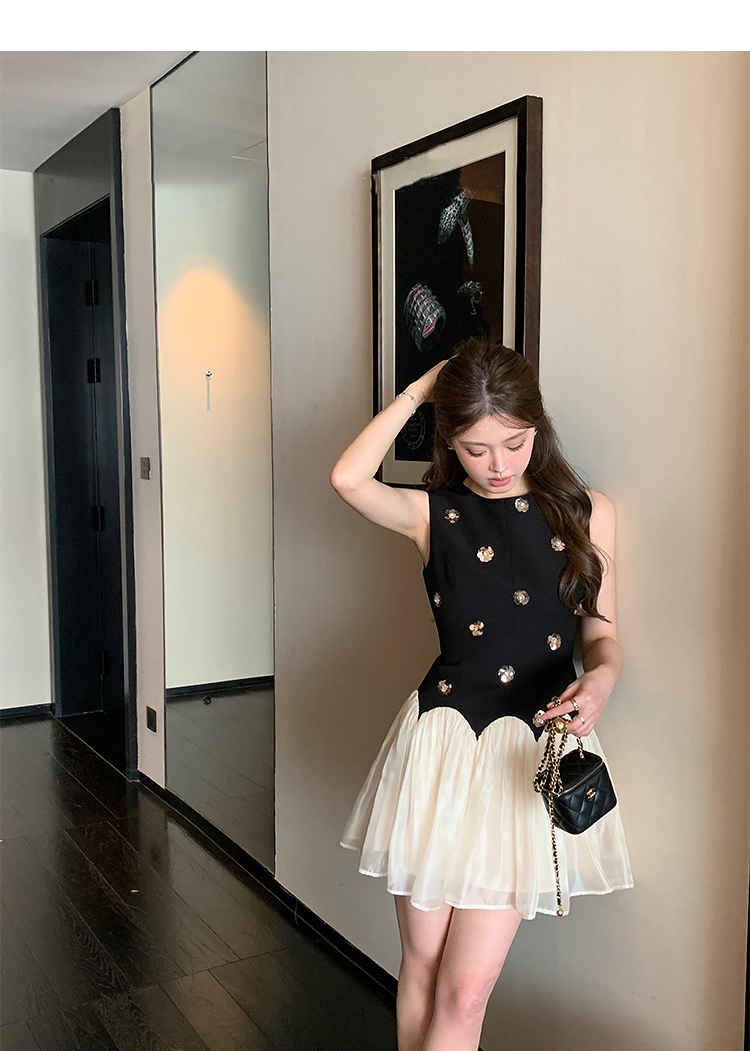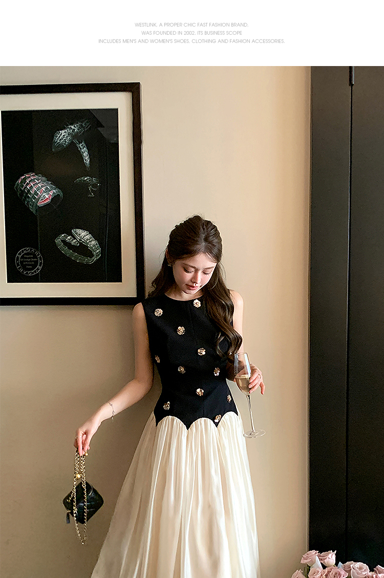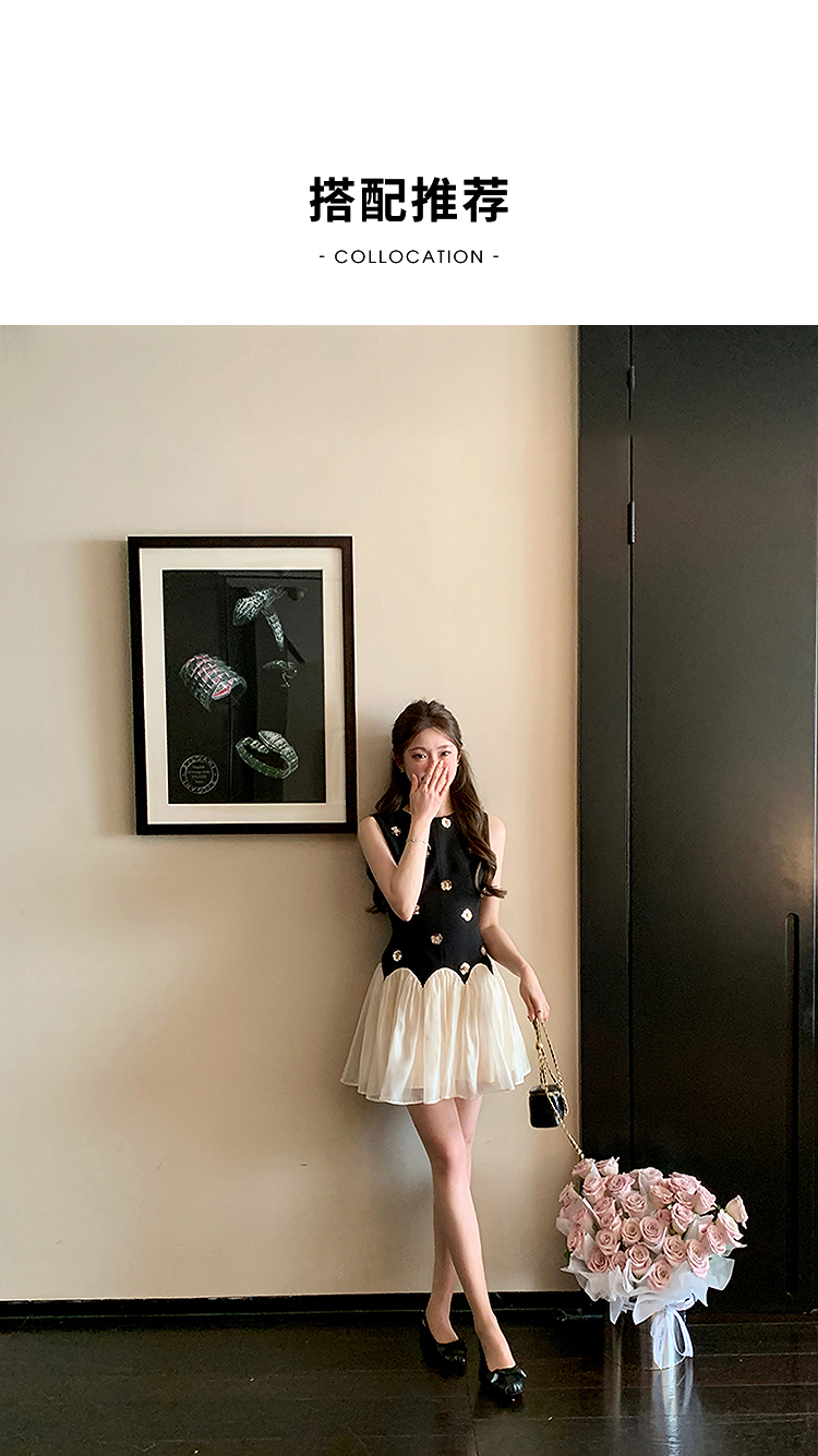 西遇富家千金风连衣裙女夏季新款法式名媛拼接无袖背心裙SS050920/SS050921