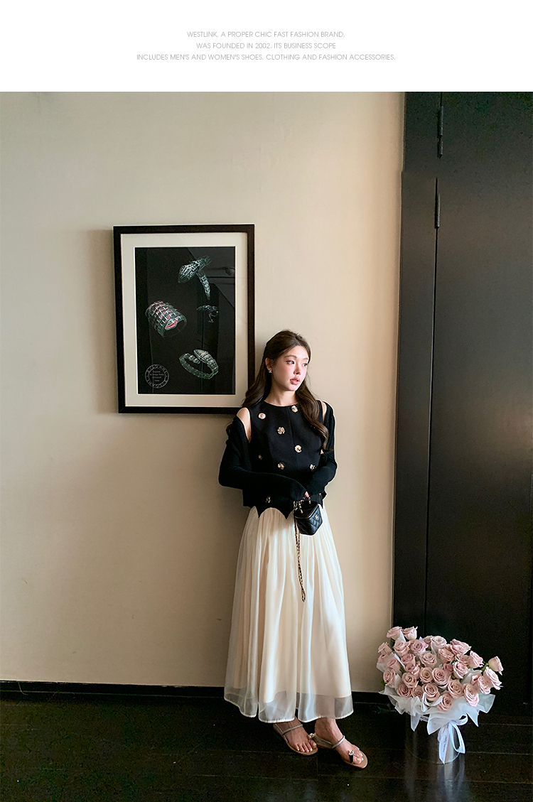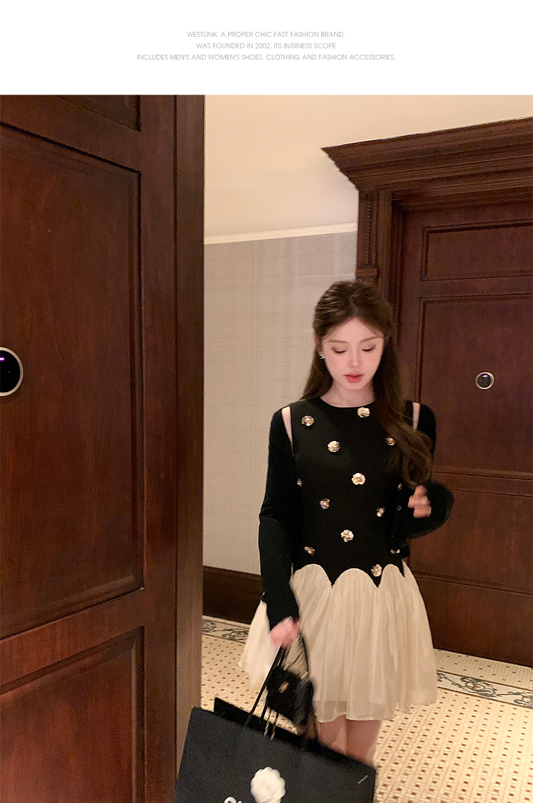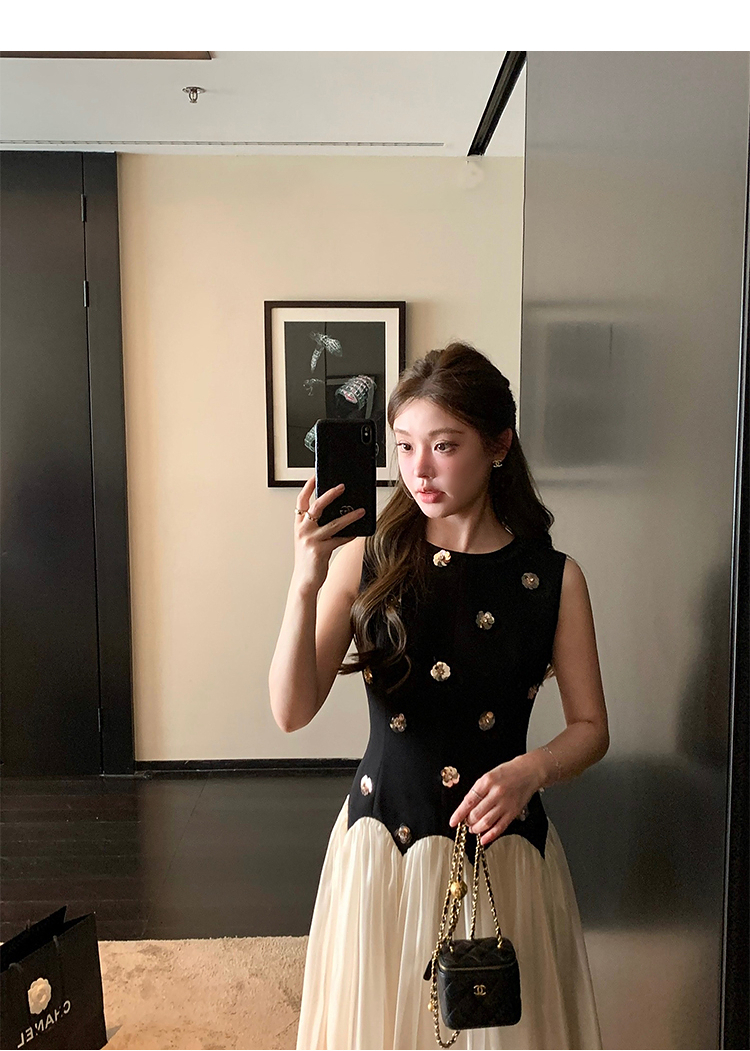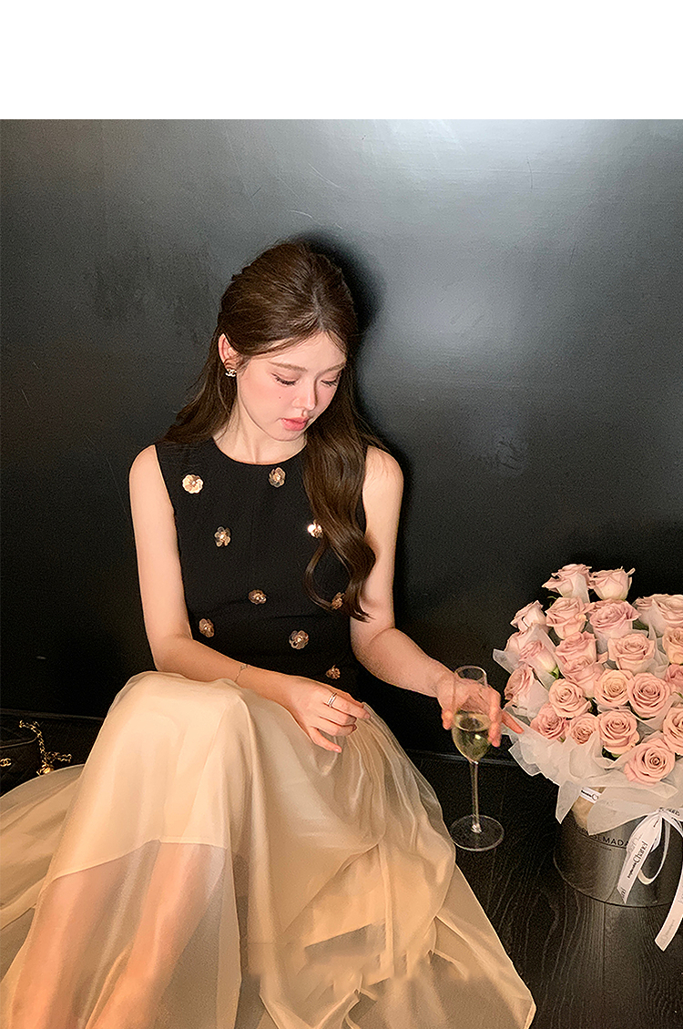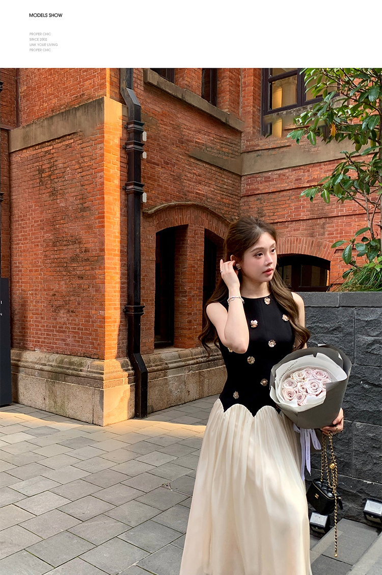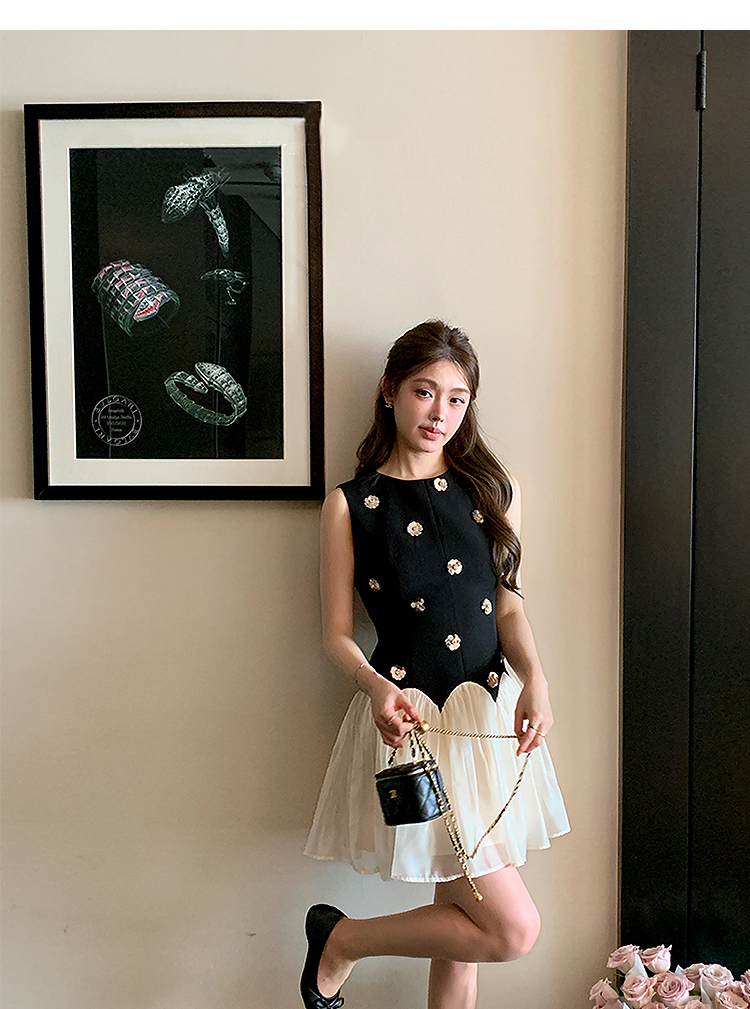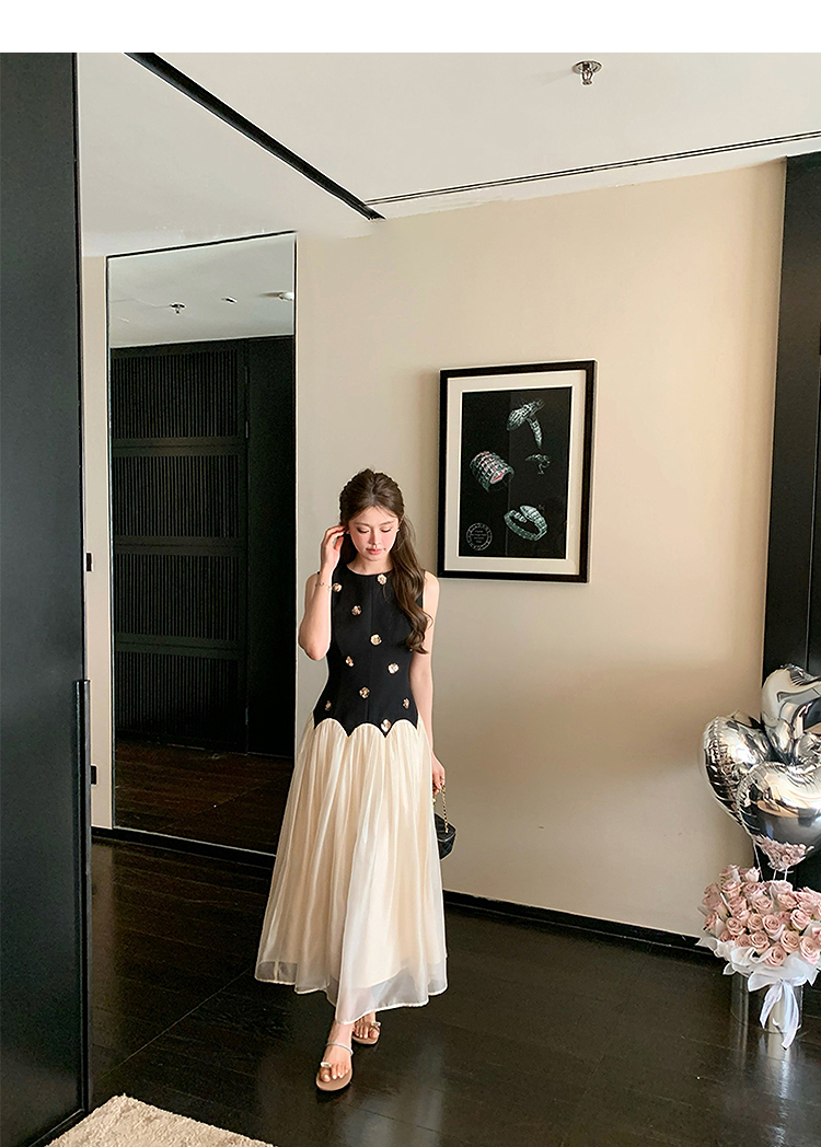 西遇富家千金风连衣裙女夏季新款法式名媛拼接无袖背心裙SS050920/SS050921