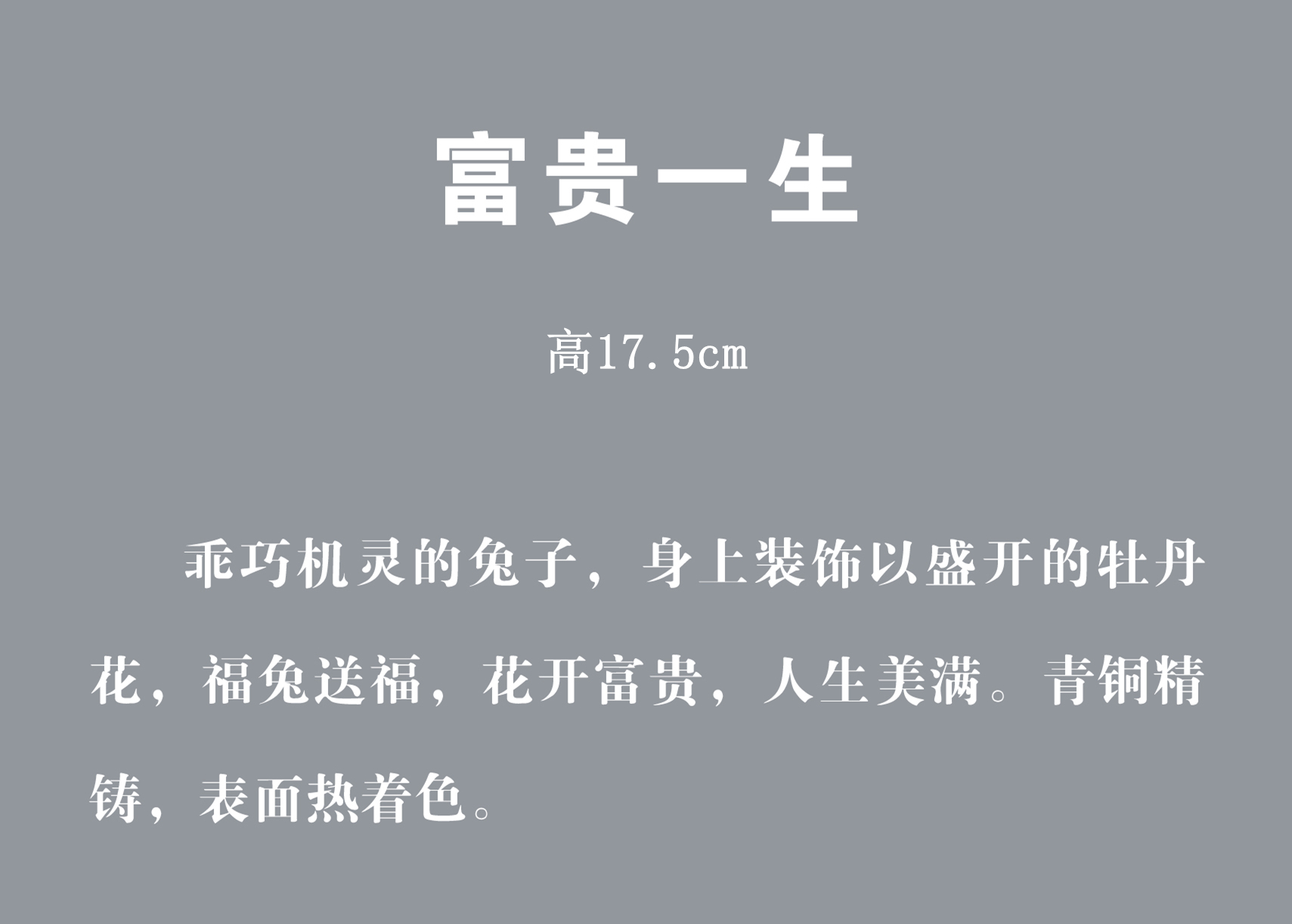 宇达青铜摆件 十二生肖兔《富贵一生》创意装饰 家居工艺摆件 高17.5cm