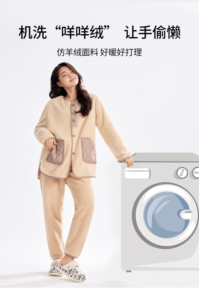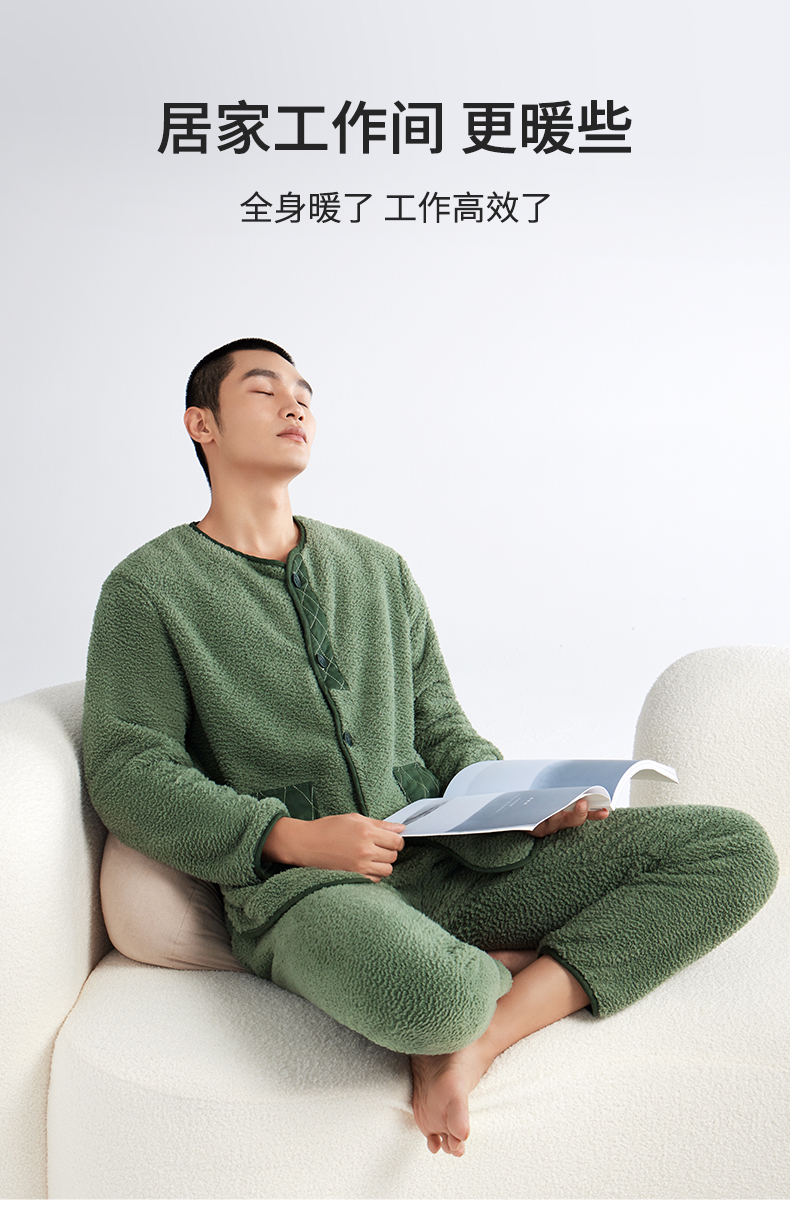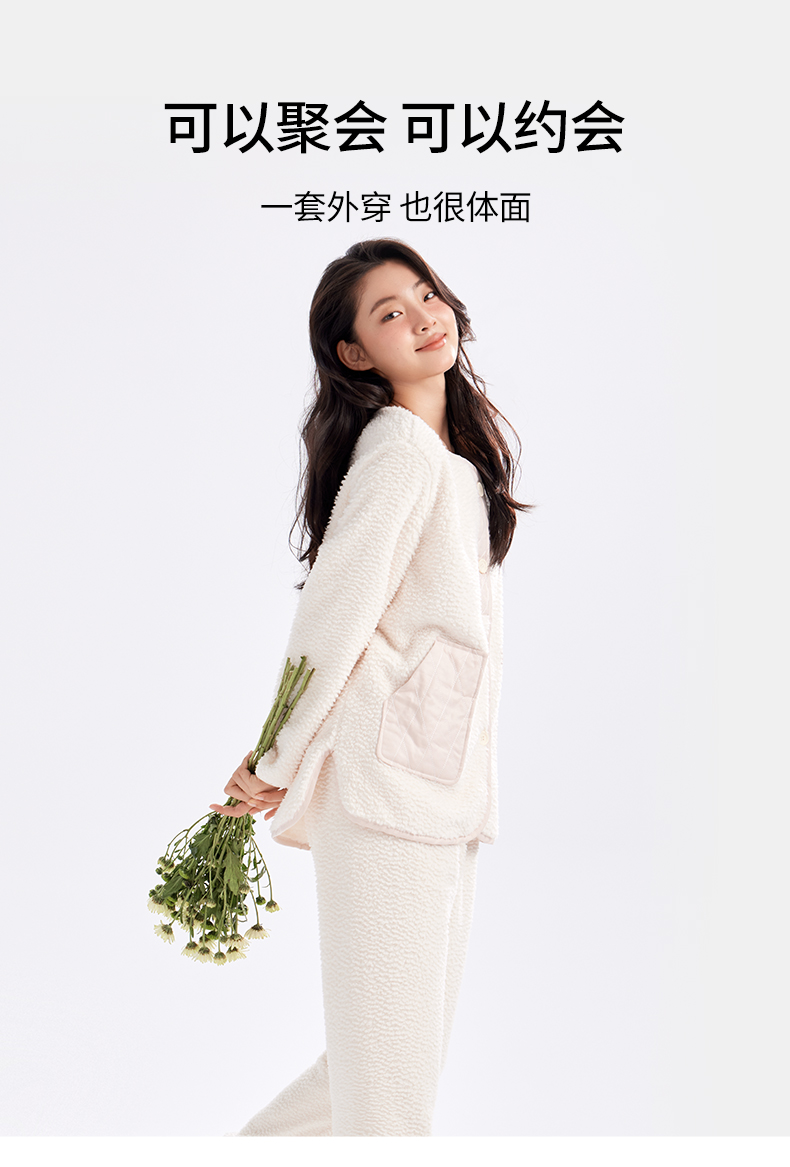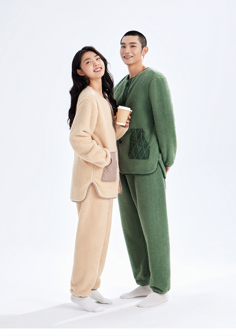 有棵树珊瑚绒男女情侣宽松可外穿家居套装C-L1004