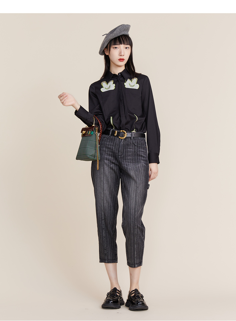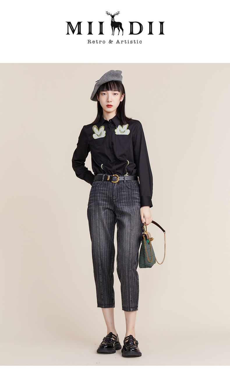 MIIDII谜底2022春款简约休闲渐变洗水宽松纯棉牛仔裤女221MK0009