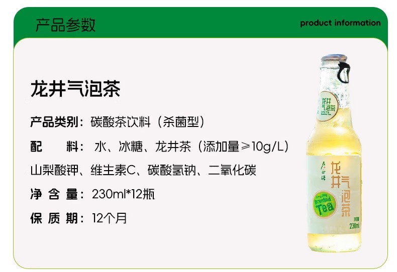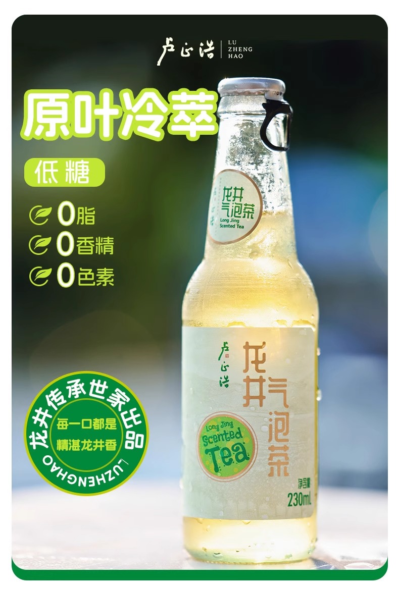 【整箱12瓶】卢正浩龙井气泡茶无酒精香槟原叶冷萃气泡水饮料0脂