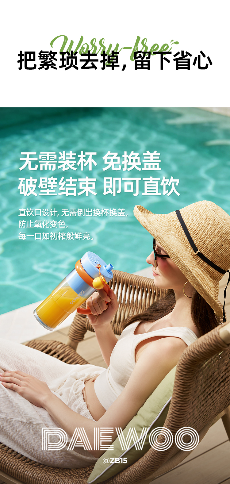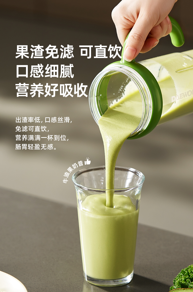 2、【免滤直饮】:无需倒杯,密封直饮口设计,免换盖可直饮,口感细腻无渣好吸收