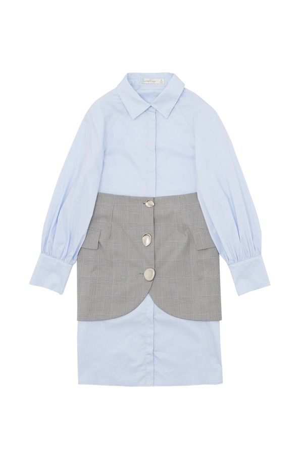 SUMMER & SAGE 格纹拼接蓝色衬衫裙 6507