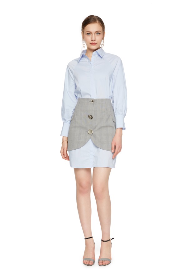AVA 灰色格纹高腰半身裙 4515