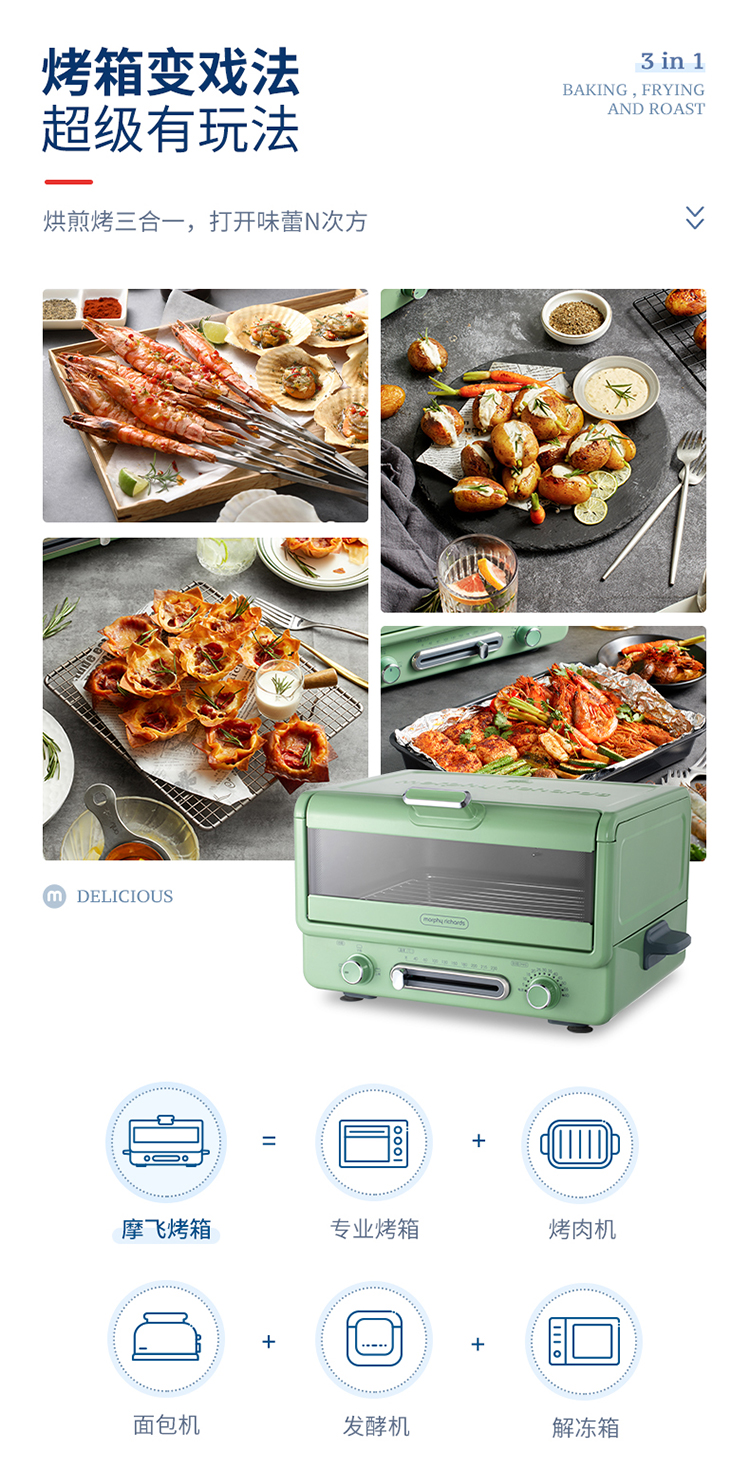 【摩飞可折叠的烘焙机】摩飞多功能电烤箱家用大容量烘焙煎烤一体烧烤机电器智能