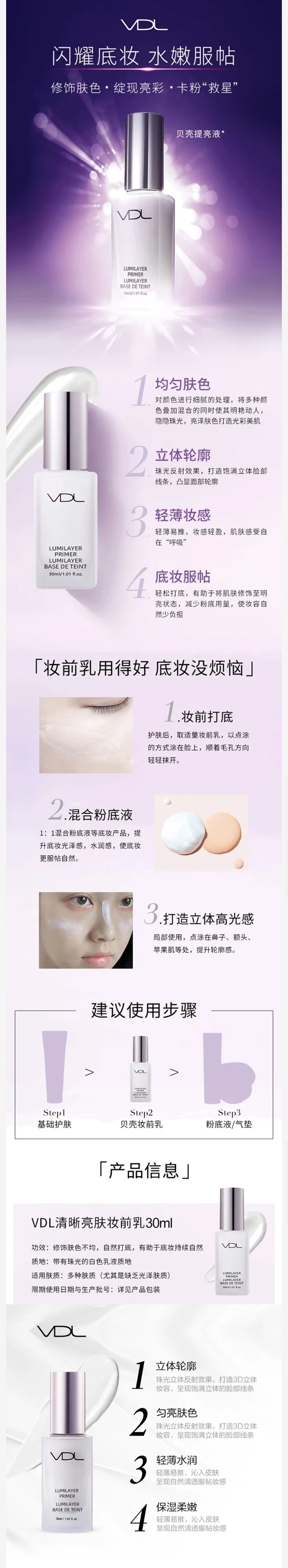 薇蒂艾儿·贝壳妆前乳细致毛孔保湿提亮隔离妆前乳隐形毛孔30ml