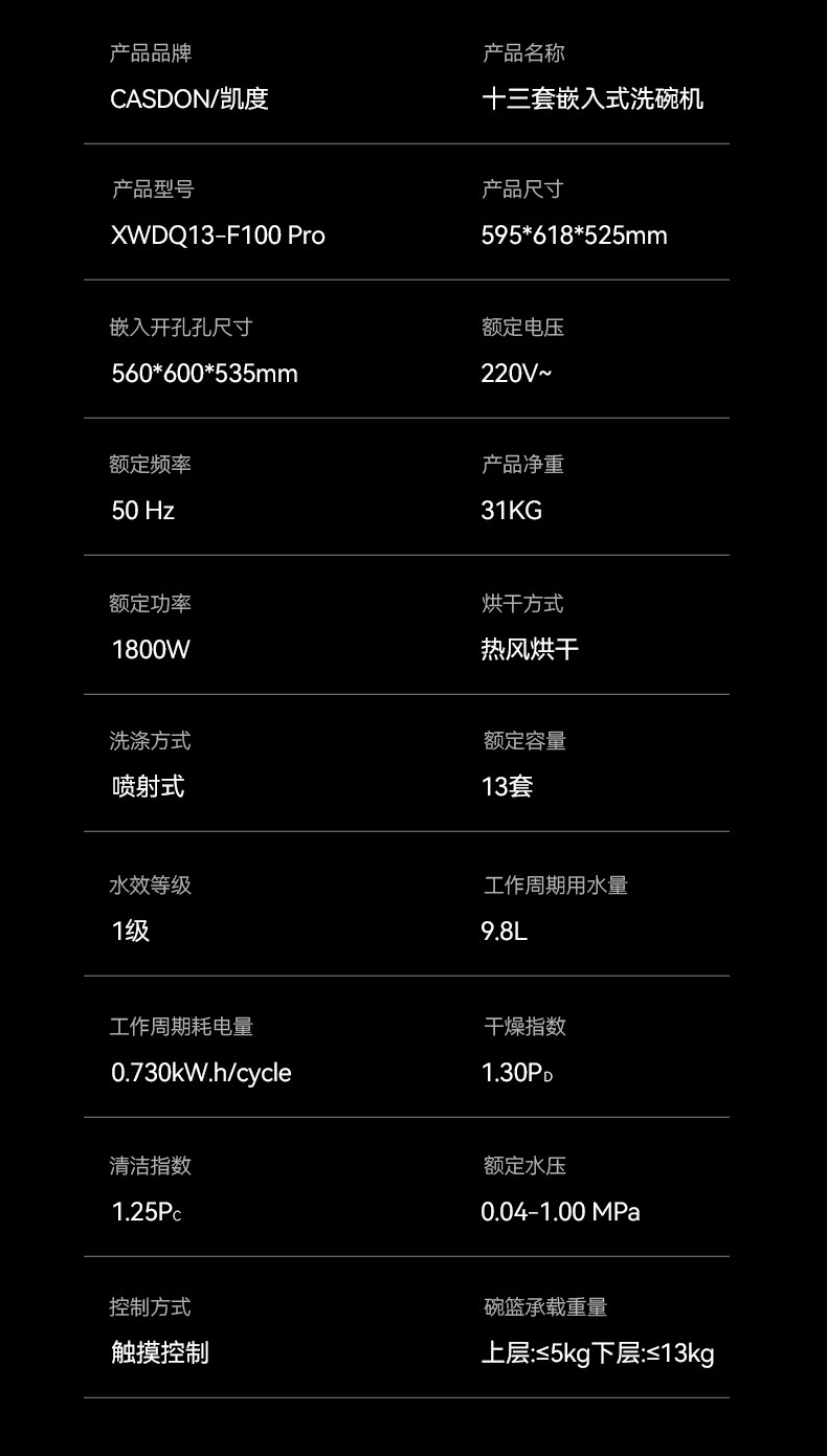 凯度净魔方嵌入式洗碗机F100pro变频13套