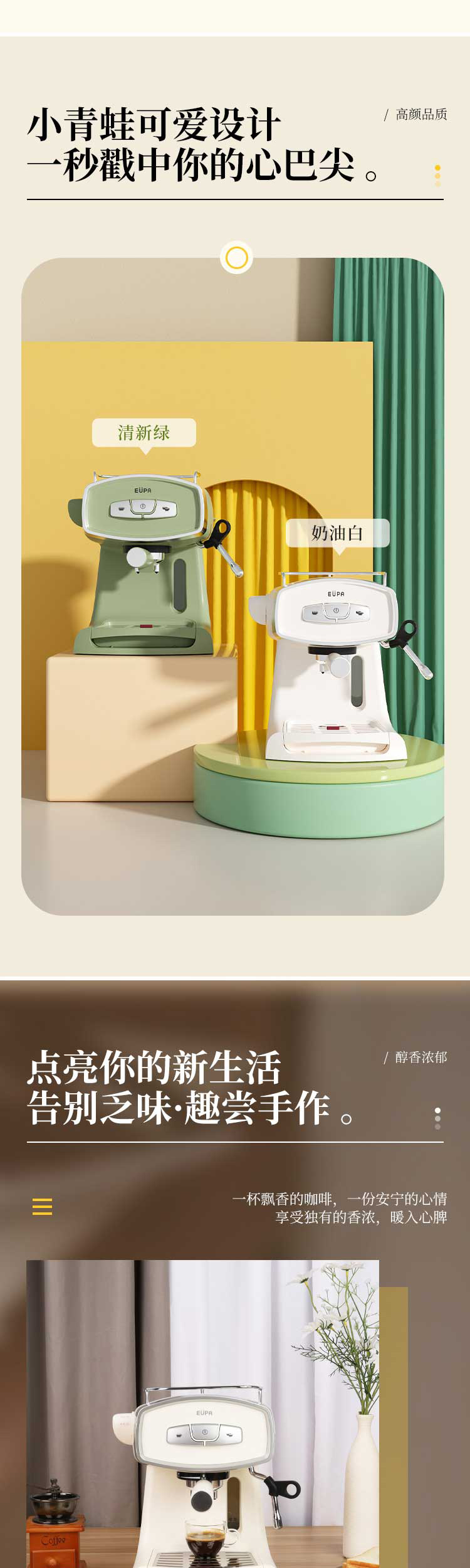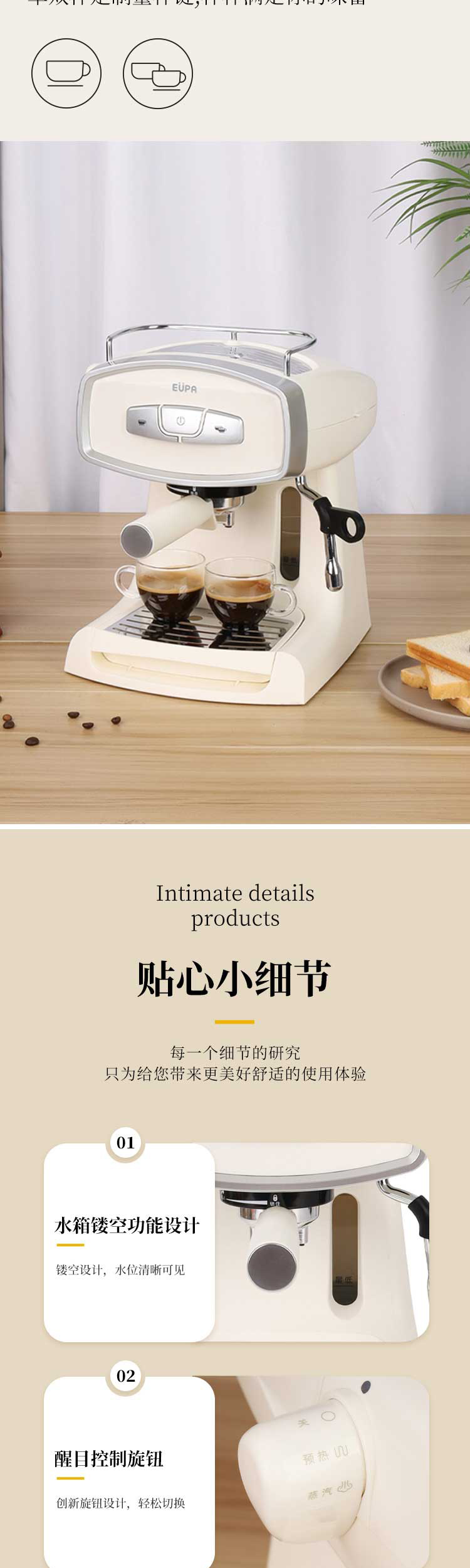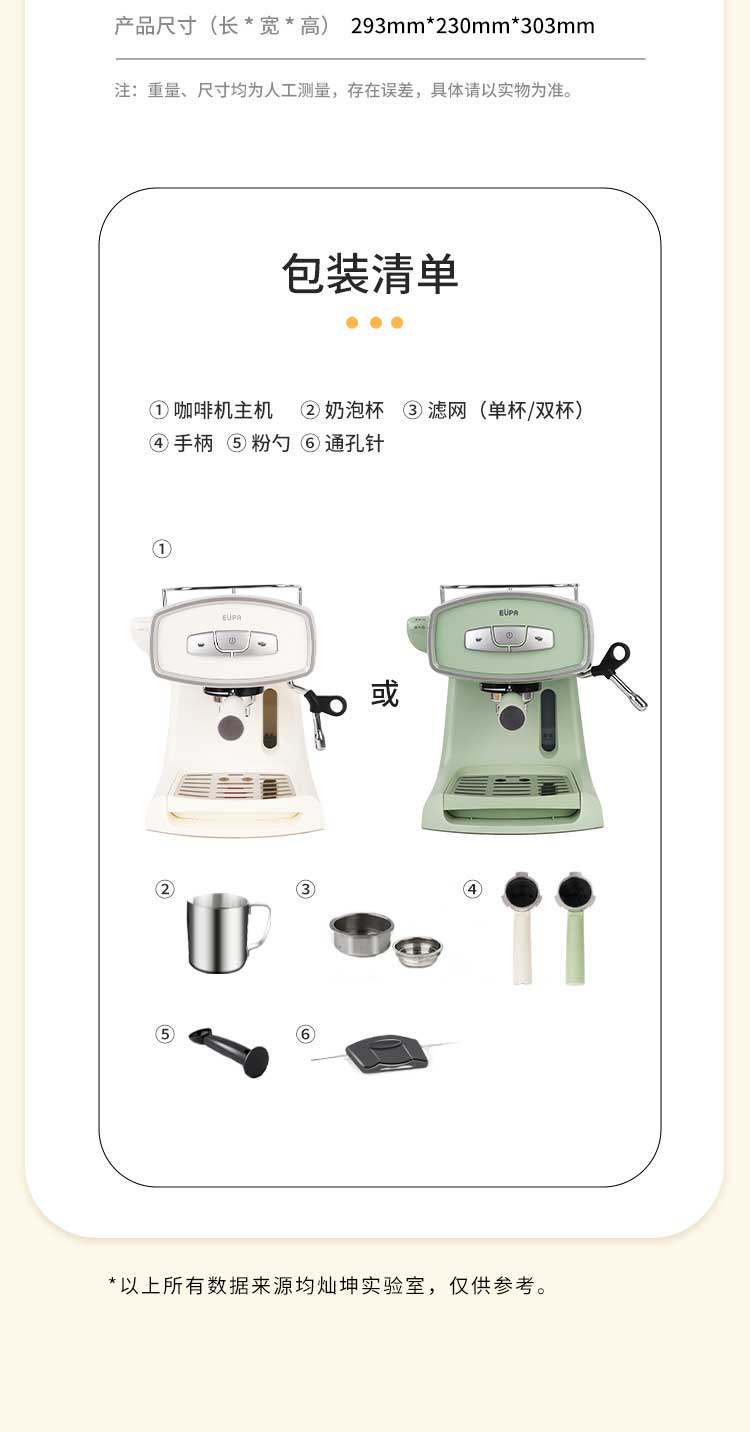 灿坤 咖啡机TSK-1826RB4(米白)泵浦式高压咖啡机半自动意式浓缩小呱机EUPA