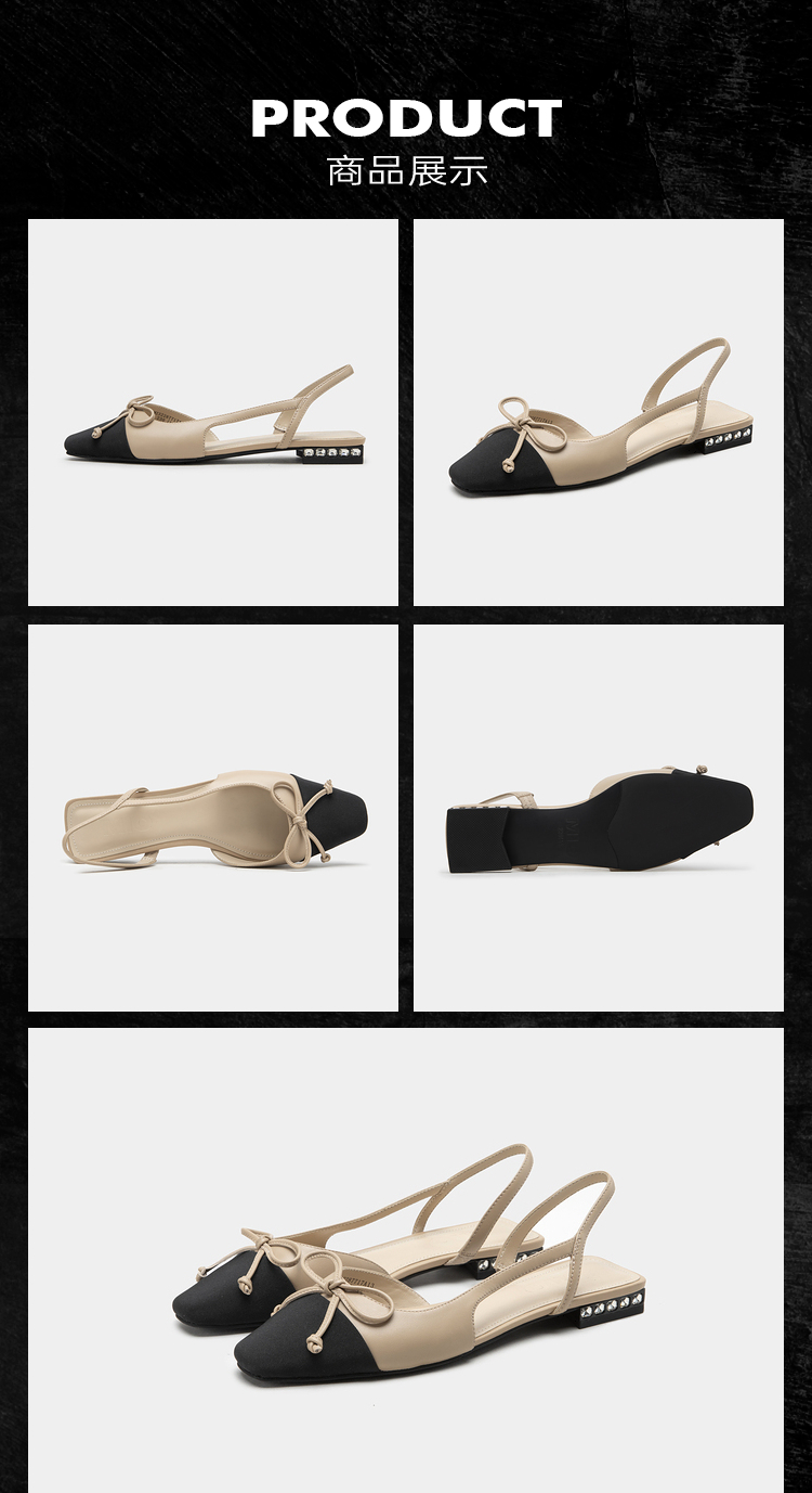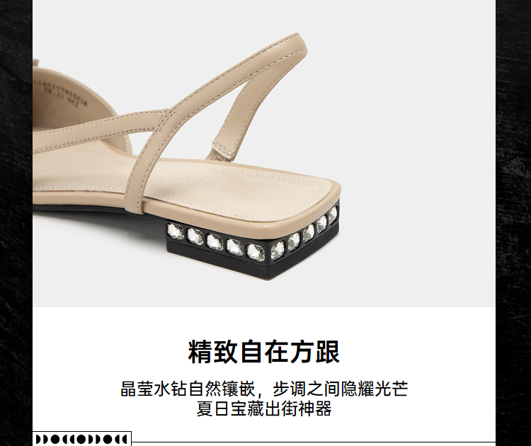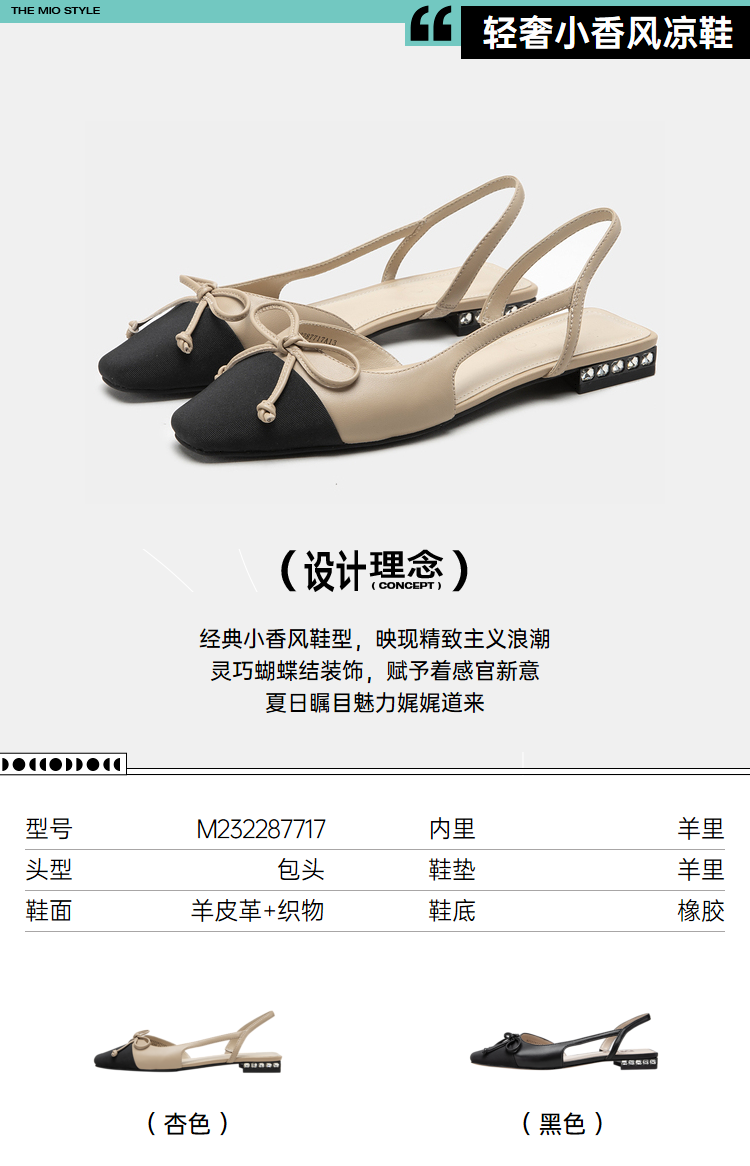 MIO米奥夏季闪钻低跟时装凉鞋舒适清爽蝴蝶结小香风包头凉鞋女鞋M232287717