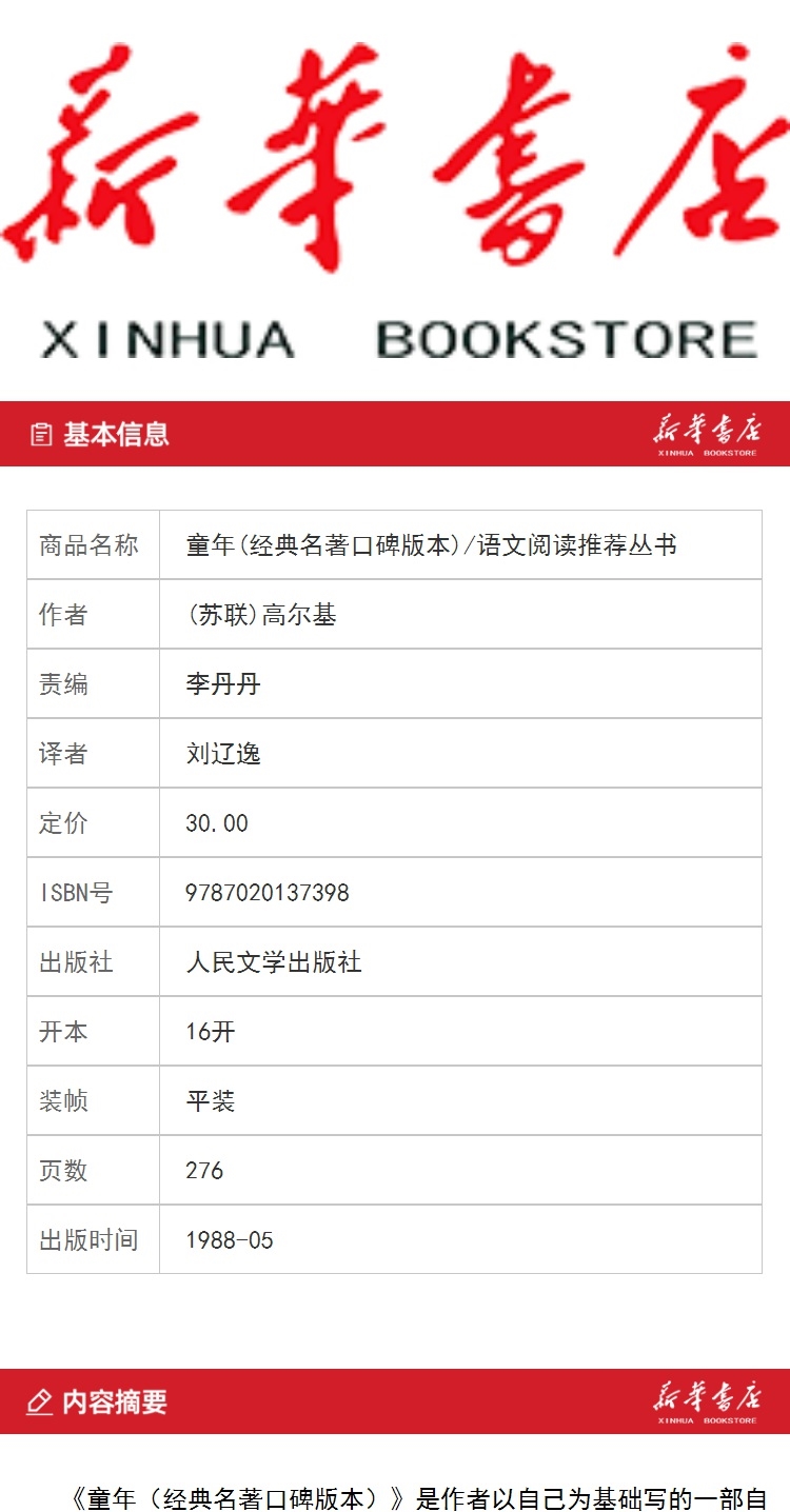 童年 快乐读书吧六年级上指定阅读 《语文》阅读丛书 人民文学出版社