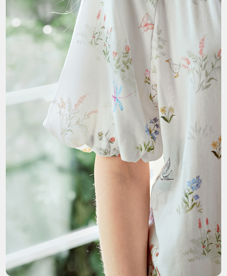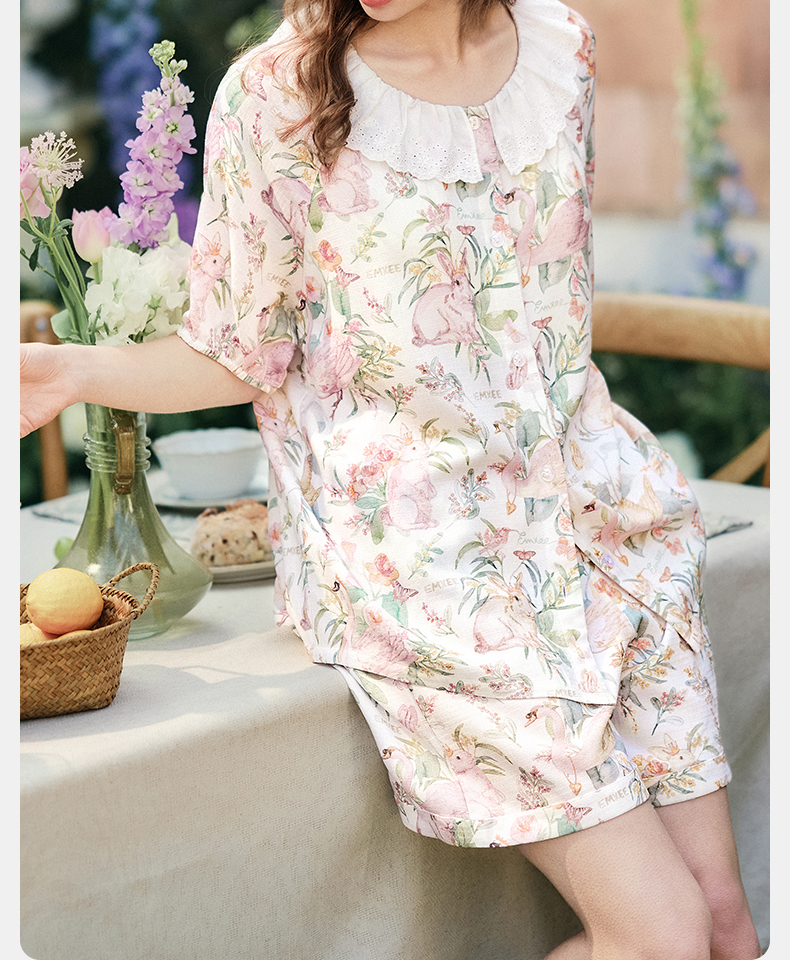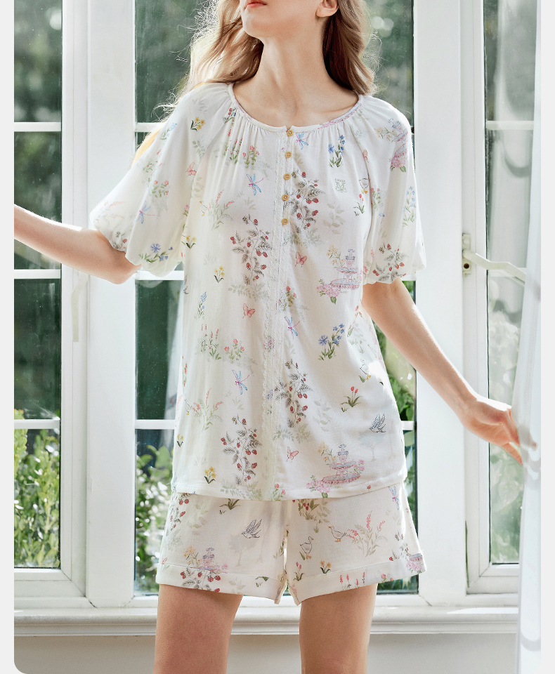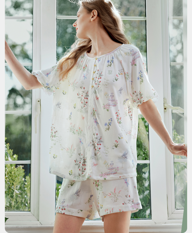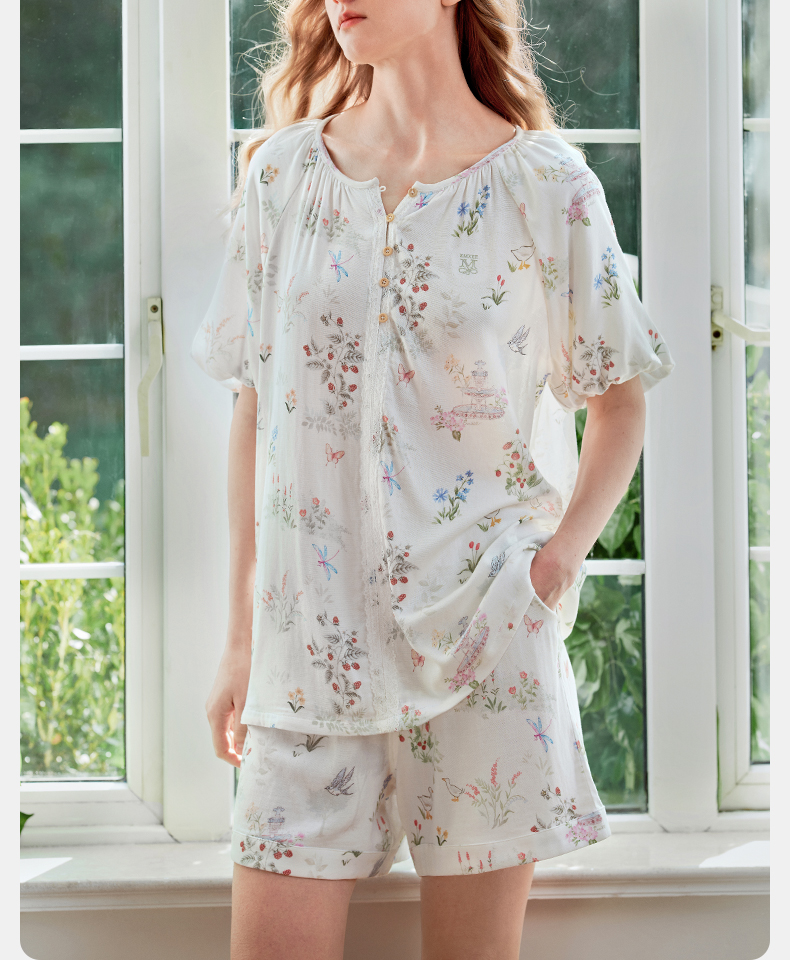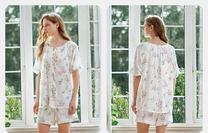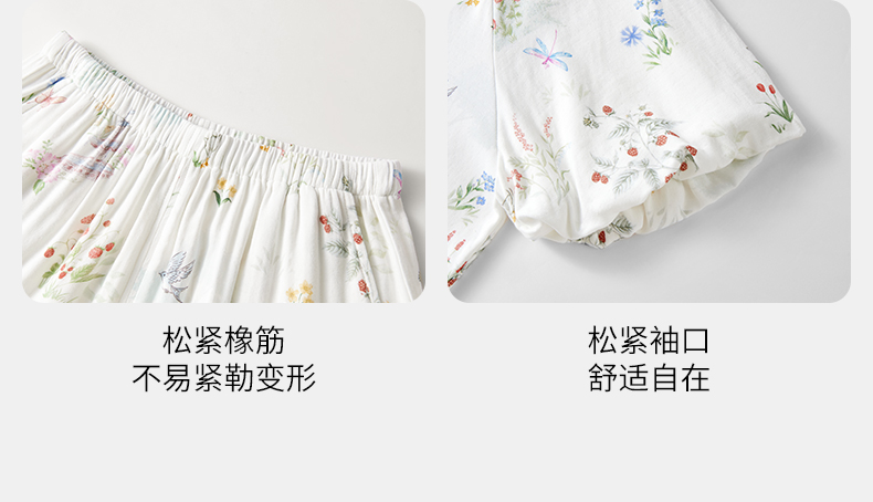 【苗苗同款】嫚熙夏季弹力丝麻棉女士睡衣段袖家居服套装2026新款