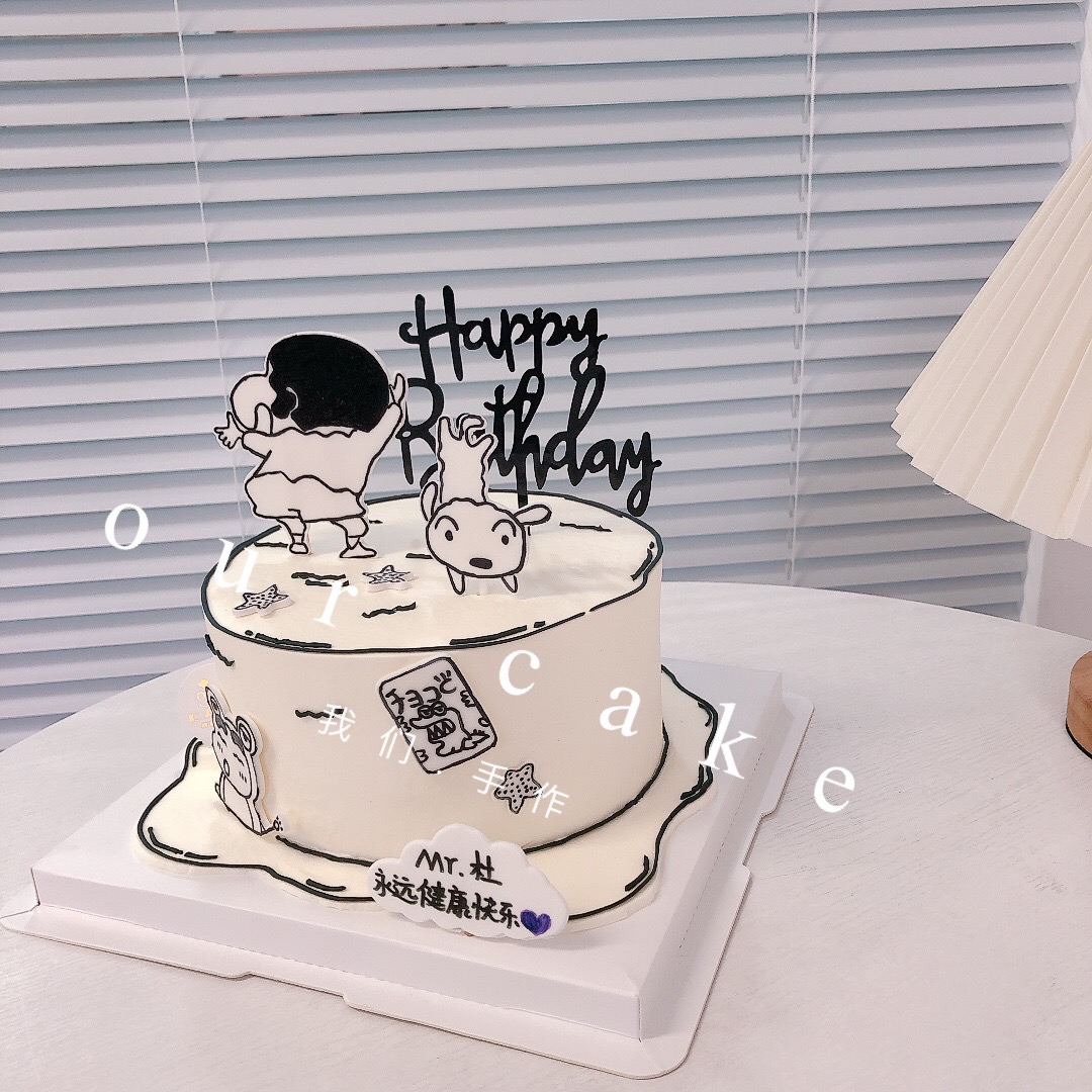 二次元漫画蜡笔小新款手绘蛋糕 -低糖处理无添加