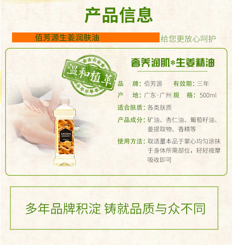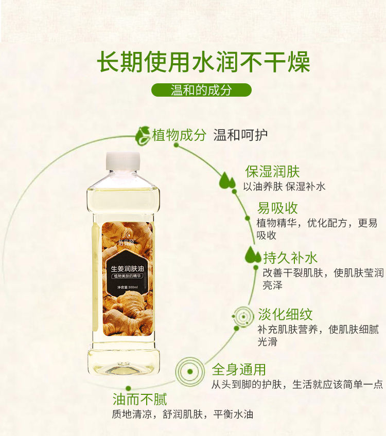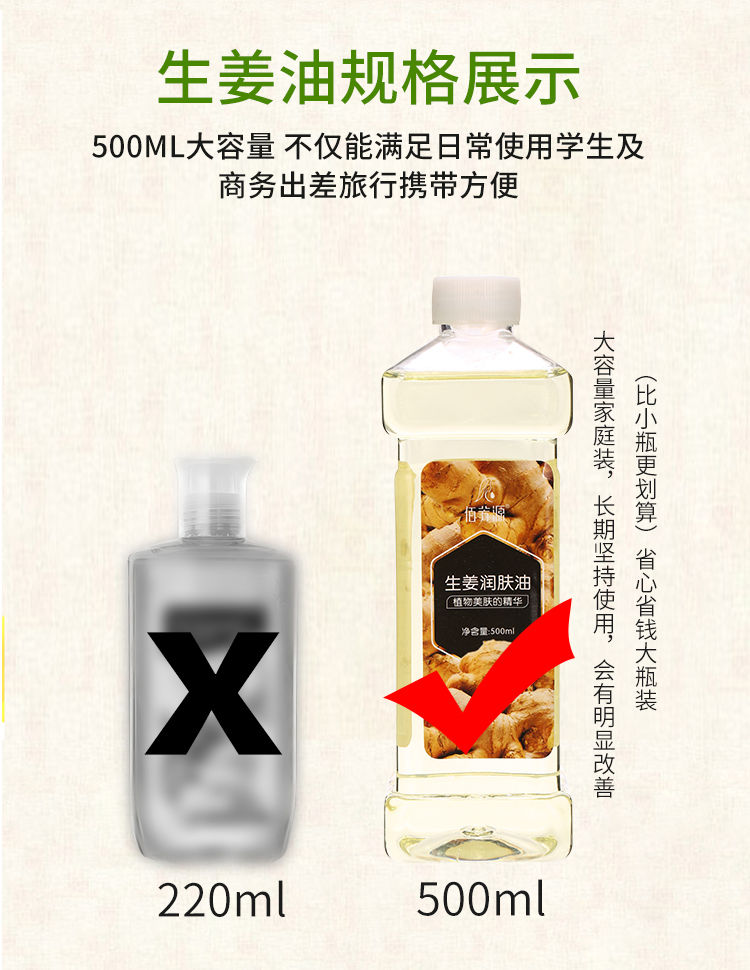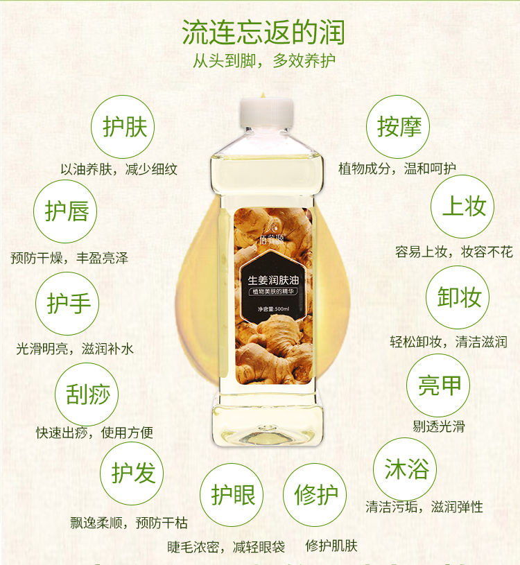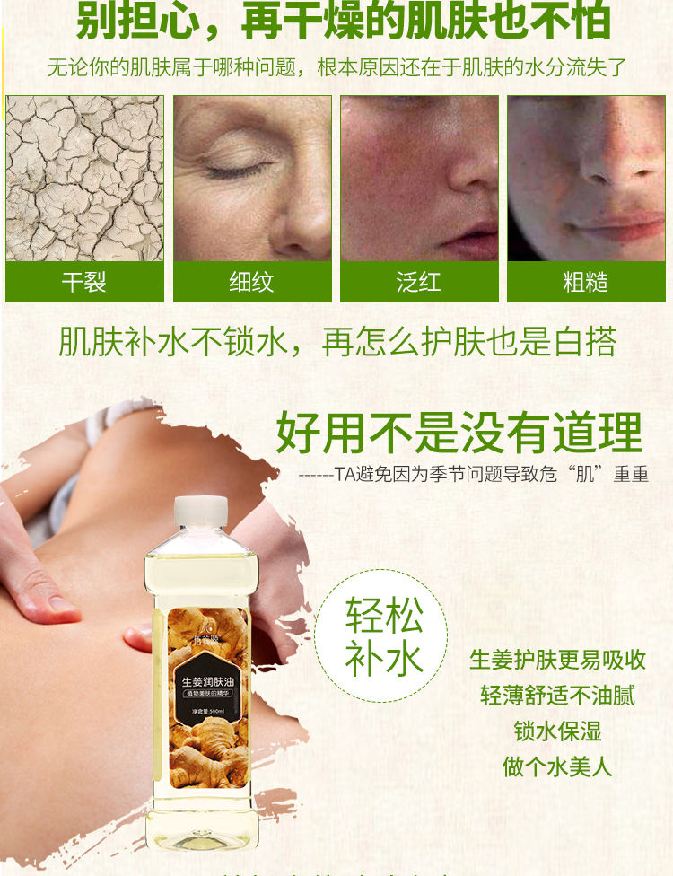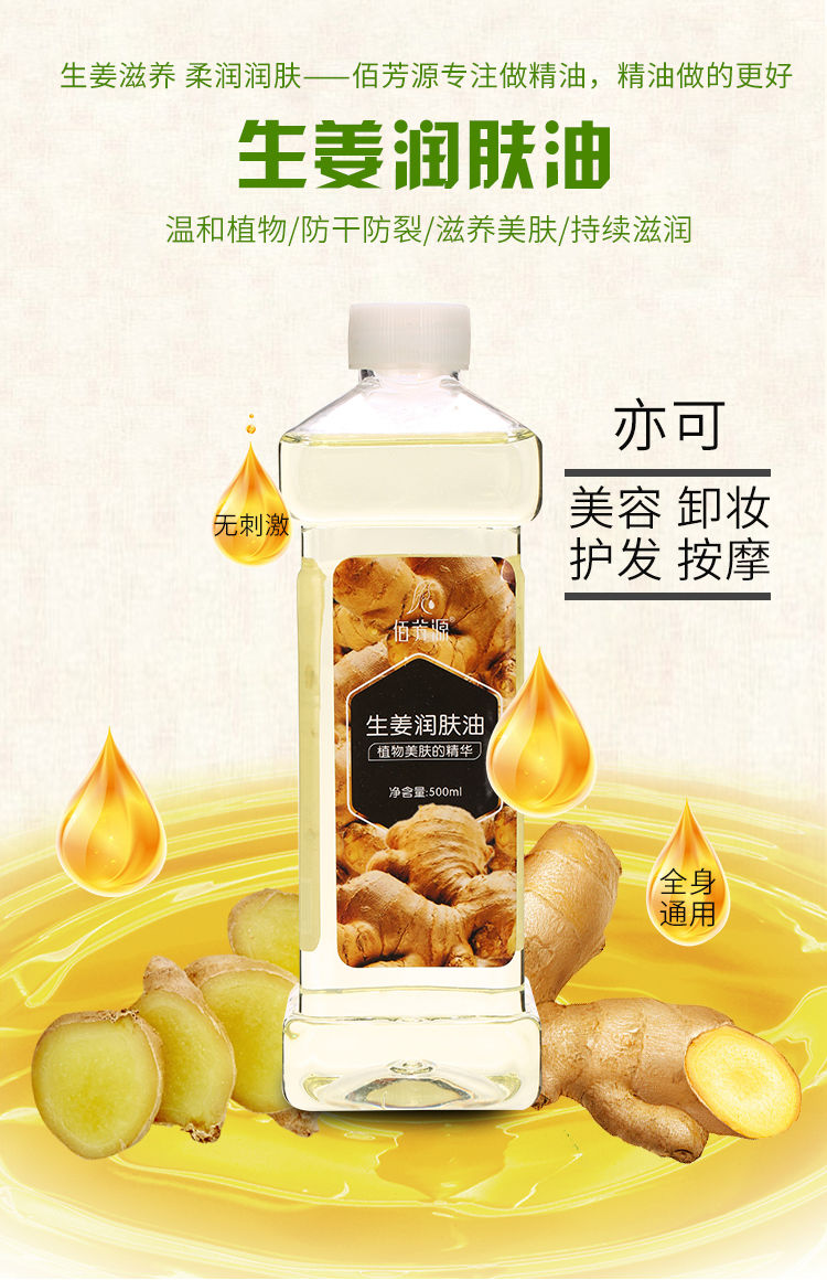 生姜润肤油美容院刮痧油生姜按摩精油全身通经络推油开背做背润肤