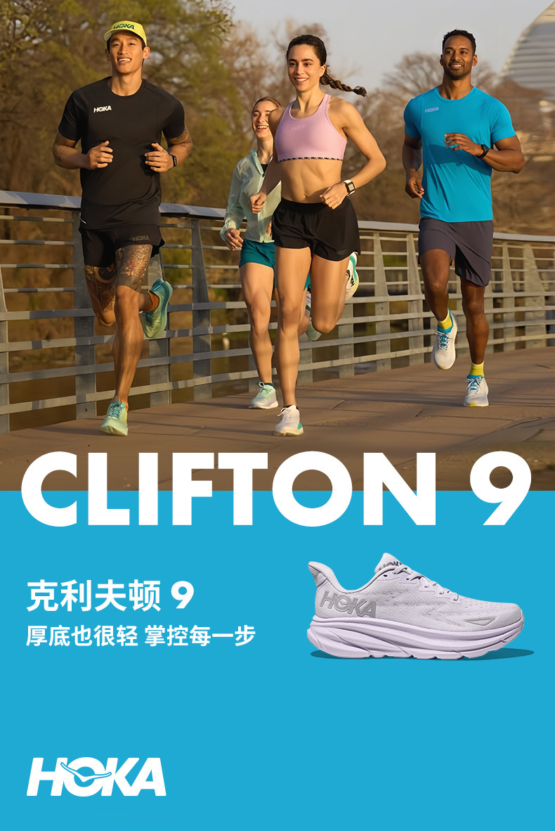 HOKA男女款春季户外轻量克利夫顿_9跑步鞋 CLIFTON_9 稳定 缓震 耐磨
