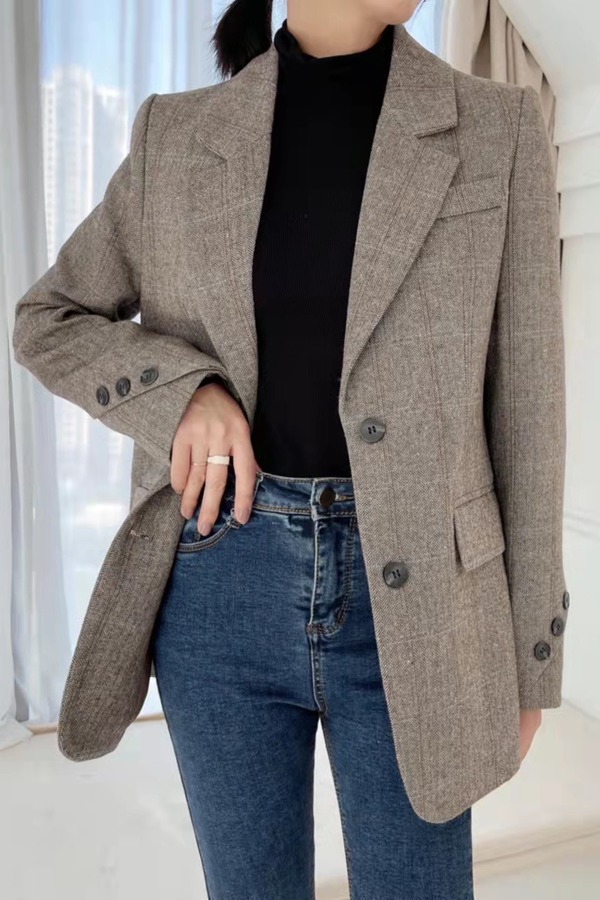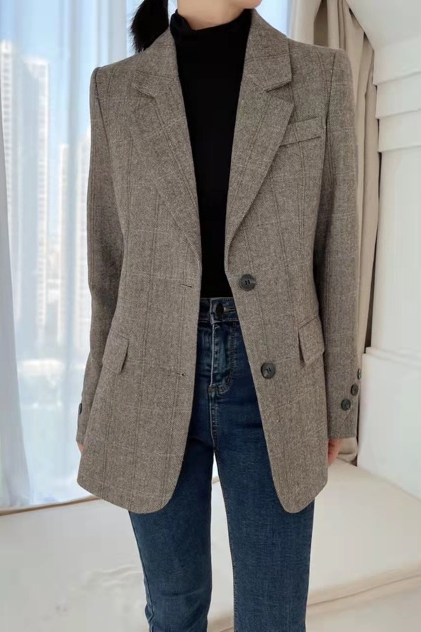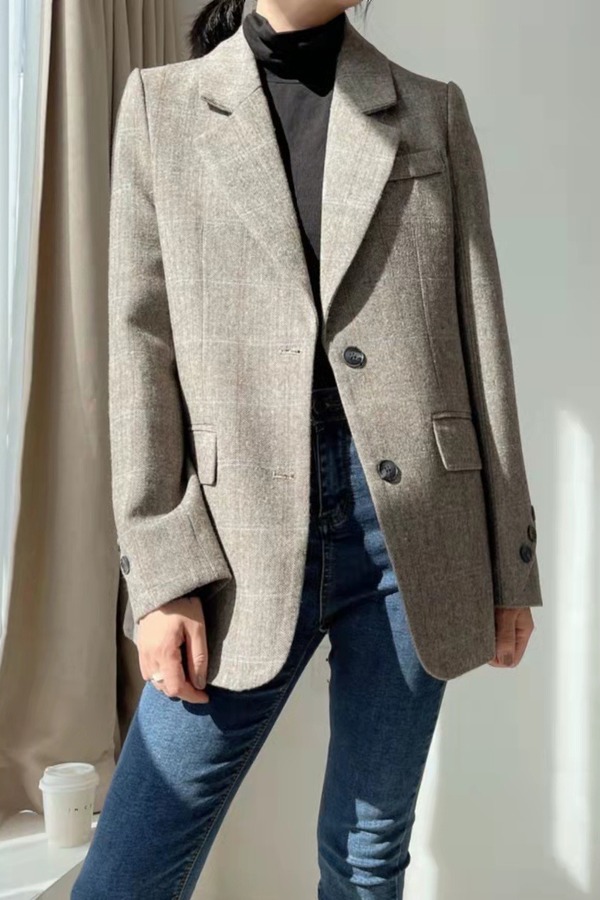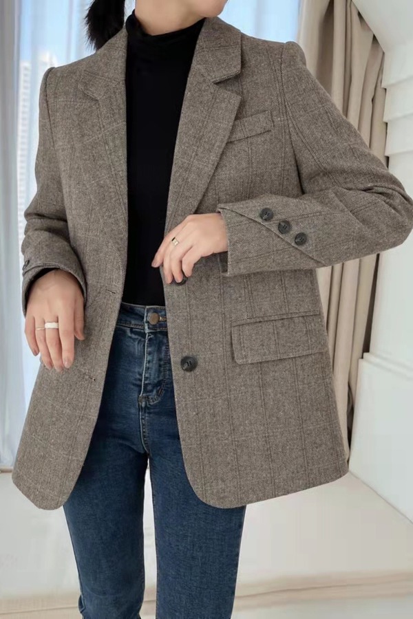 ESTELLICA 棕色通勤感加厚西装外套 15428