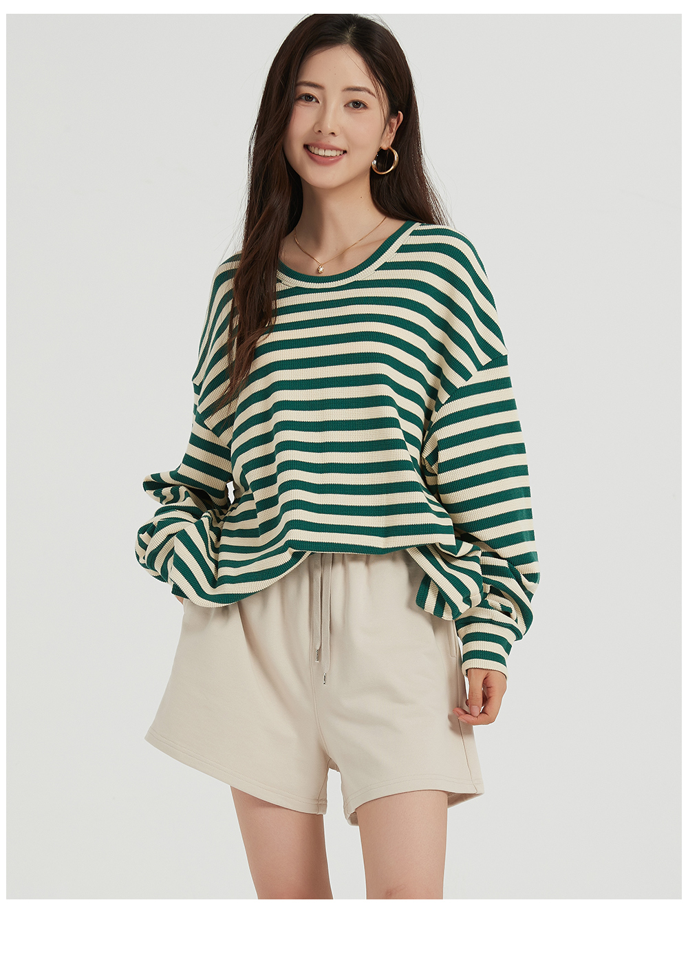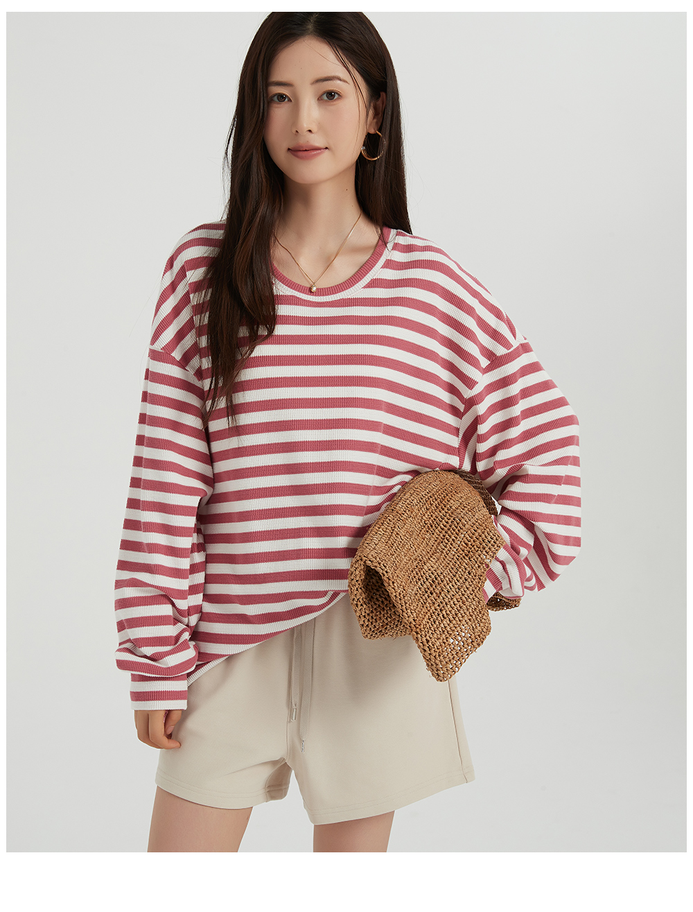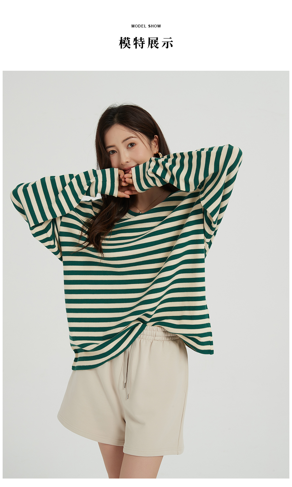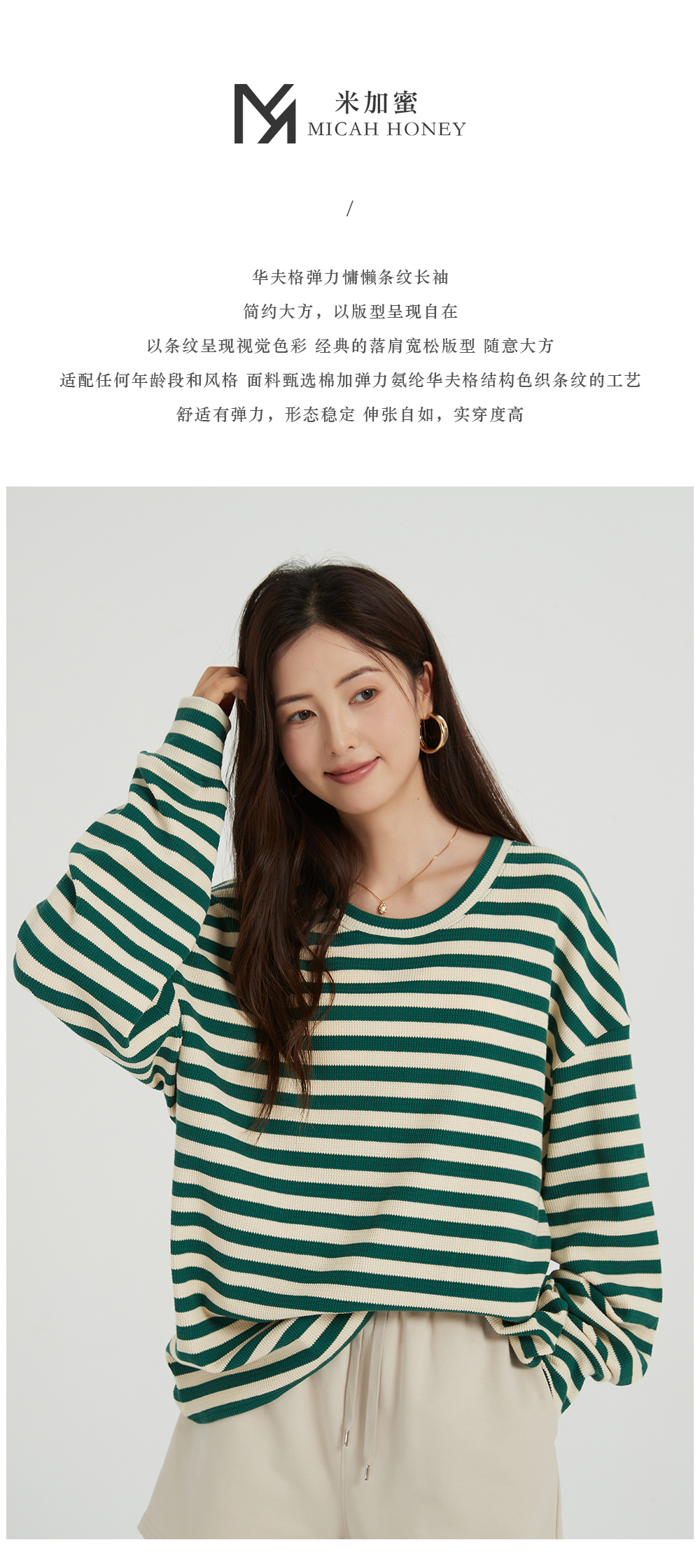 | 【商品名称】米加蜜 长袖条纹上衣 |
