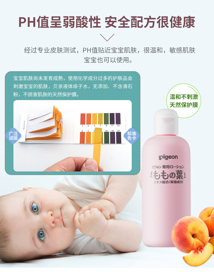 日本Pigeon贝亲桃子水痱子水桃叶水爽身露新生婴儿止痒200ml
