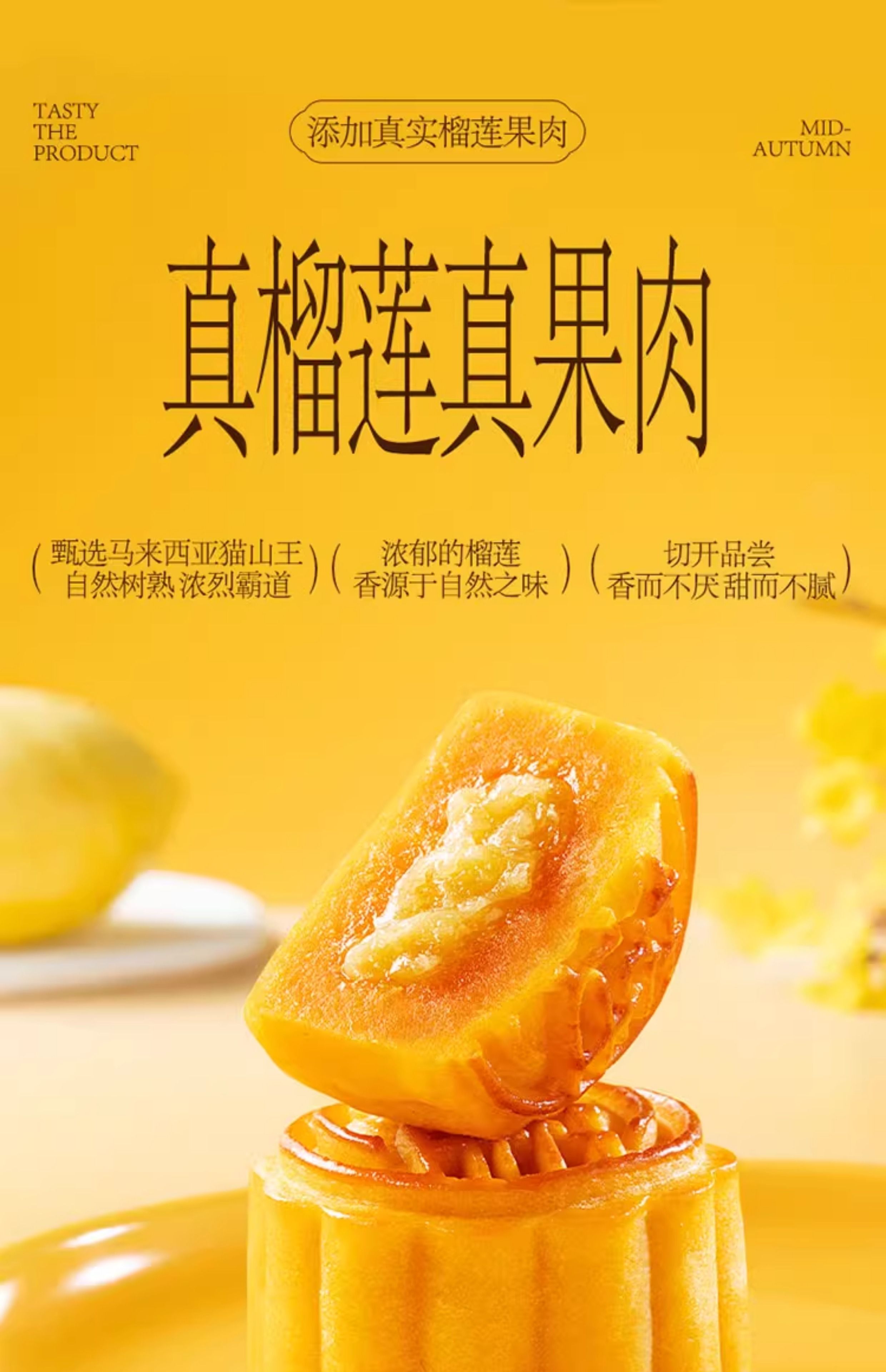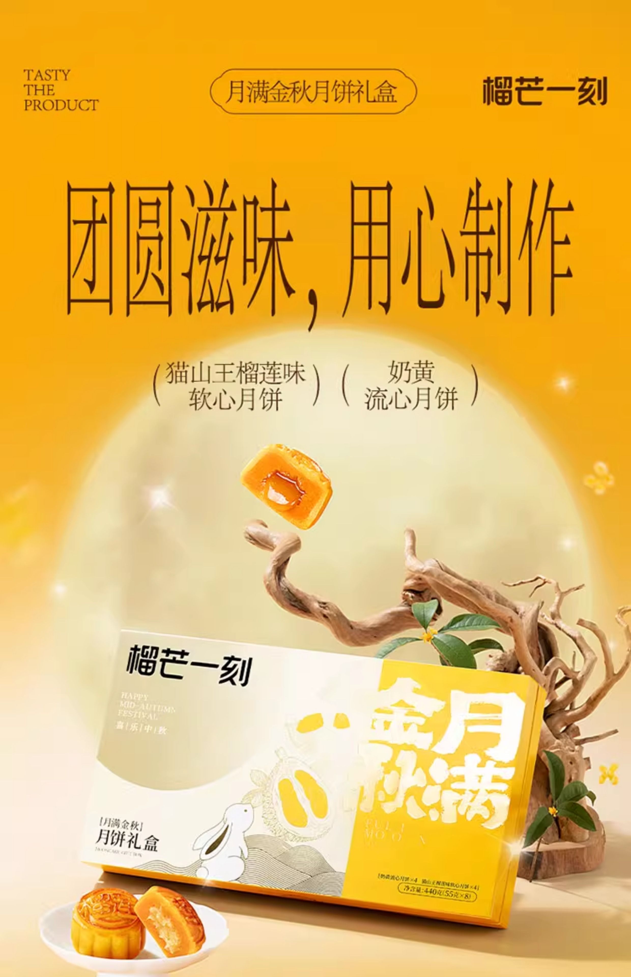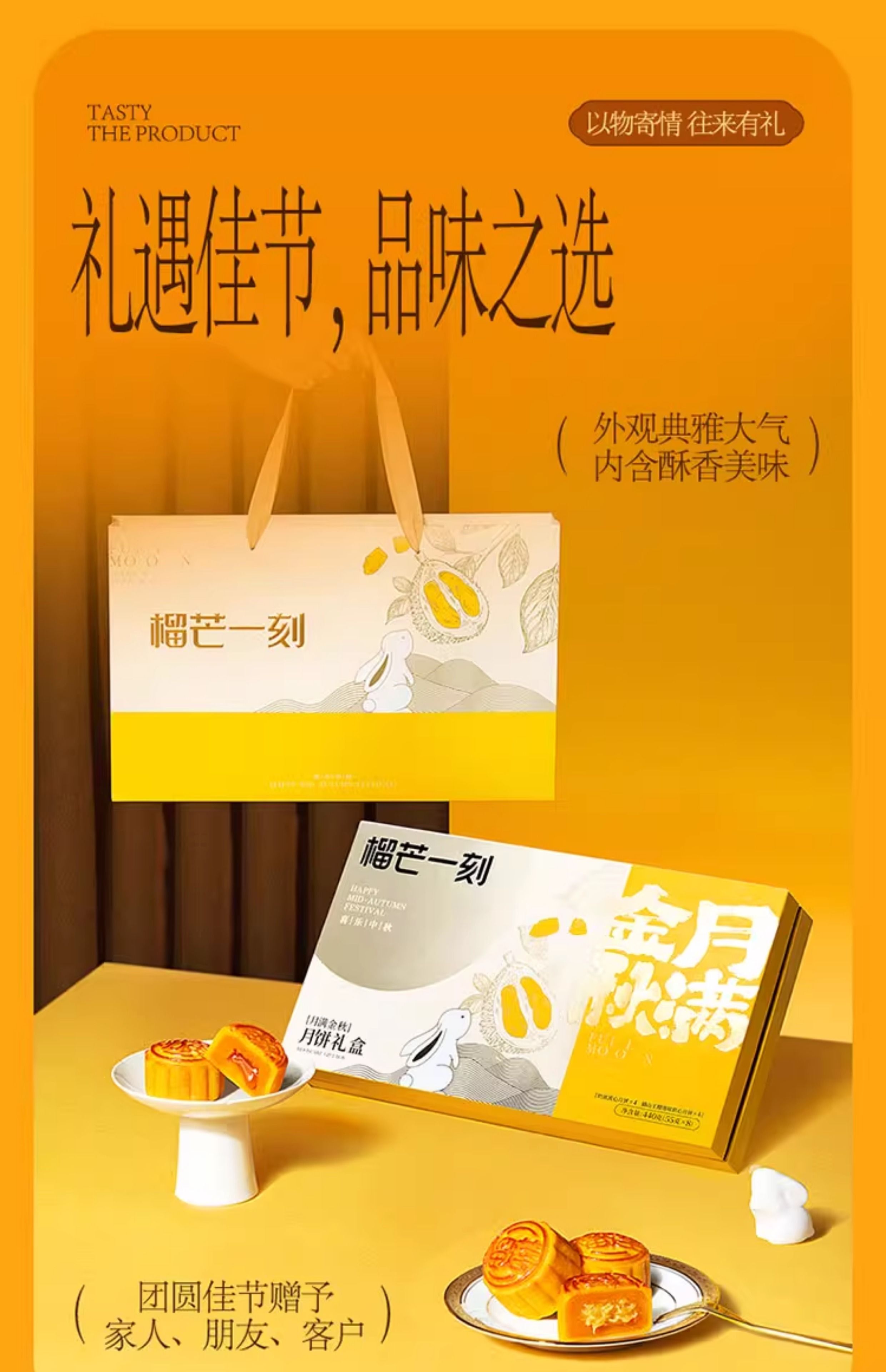 榴芒一刻月满金秋中秋月饼礼盒榴莲软心奶黄流心广式月饼礼品糕点 【尝鲜款】榴莲软心+奶黄流心55g