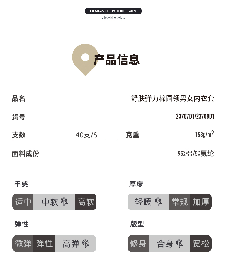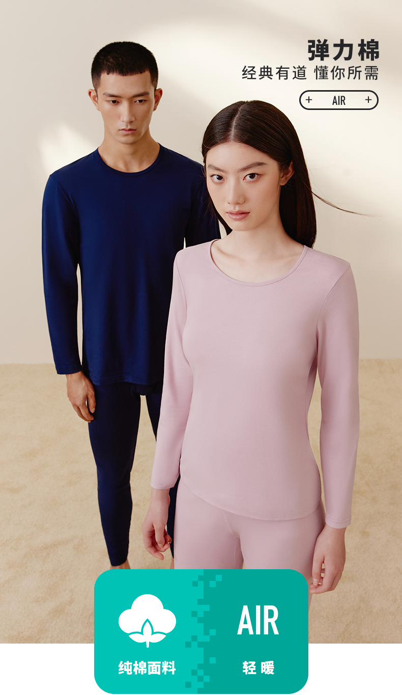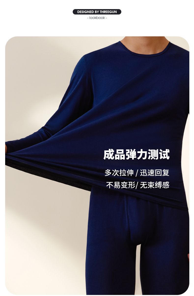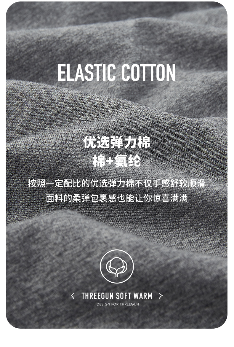 Threegun三枪 【舒肤棉】超薄弹力圆领男士保暖内衣套装-23707D021