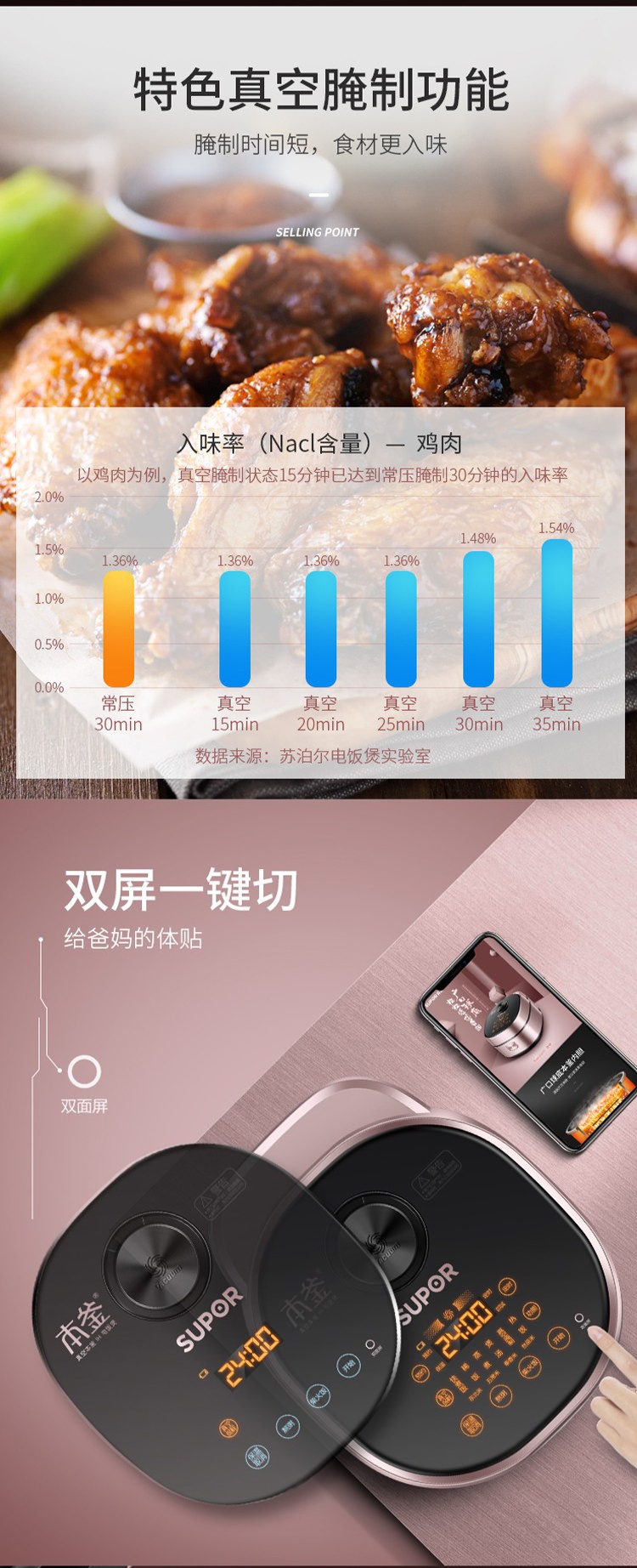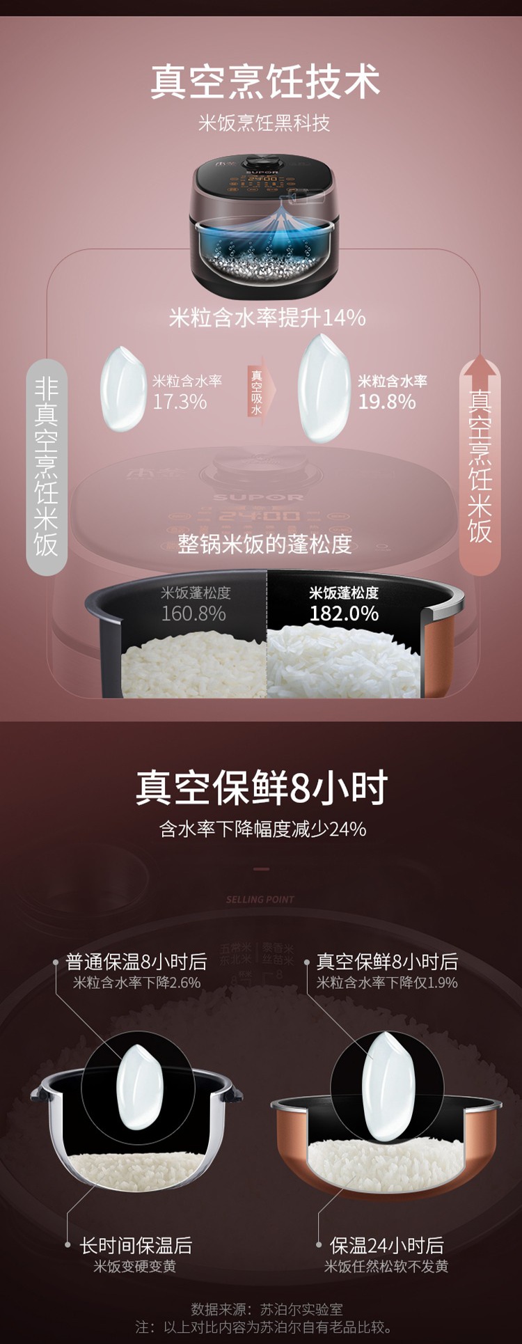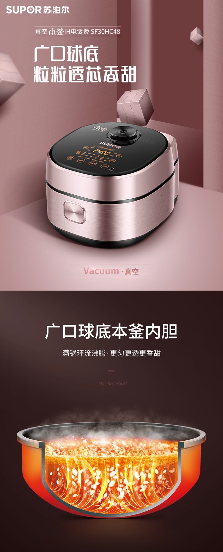 苏泊尔真空本釜IH电饭煲3升家用电饭锅迷你多功能3人 可拆卸内盖 24h定时预约SF30HC48