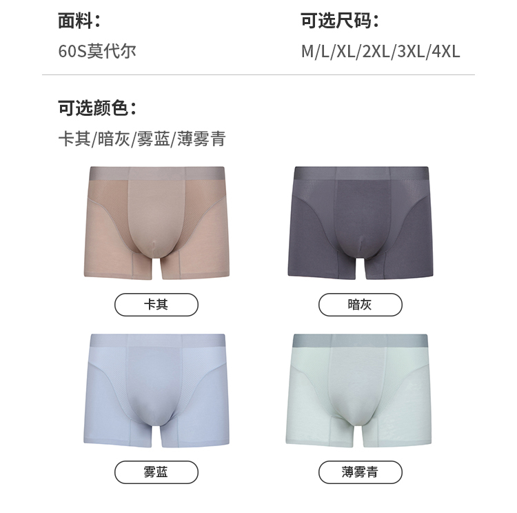 都市丽人莫代尔平角60S莫代尔铂金舒适草本养生系列平角裤FKH401