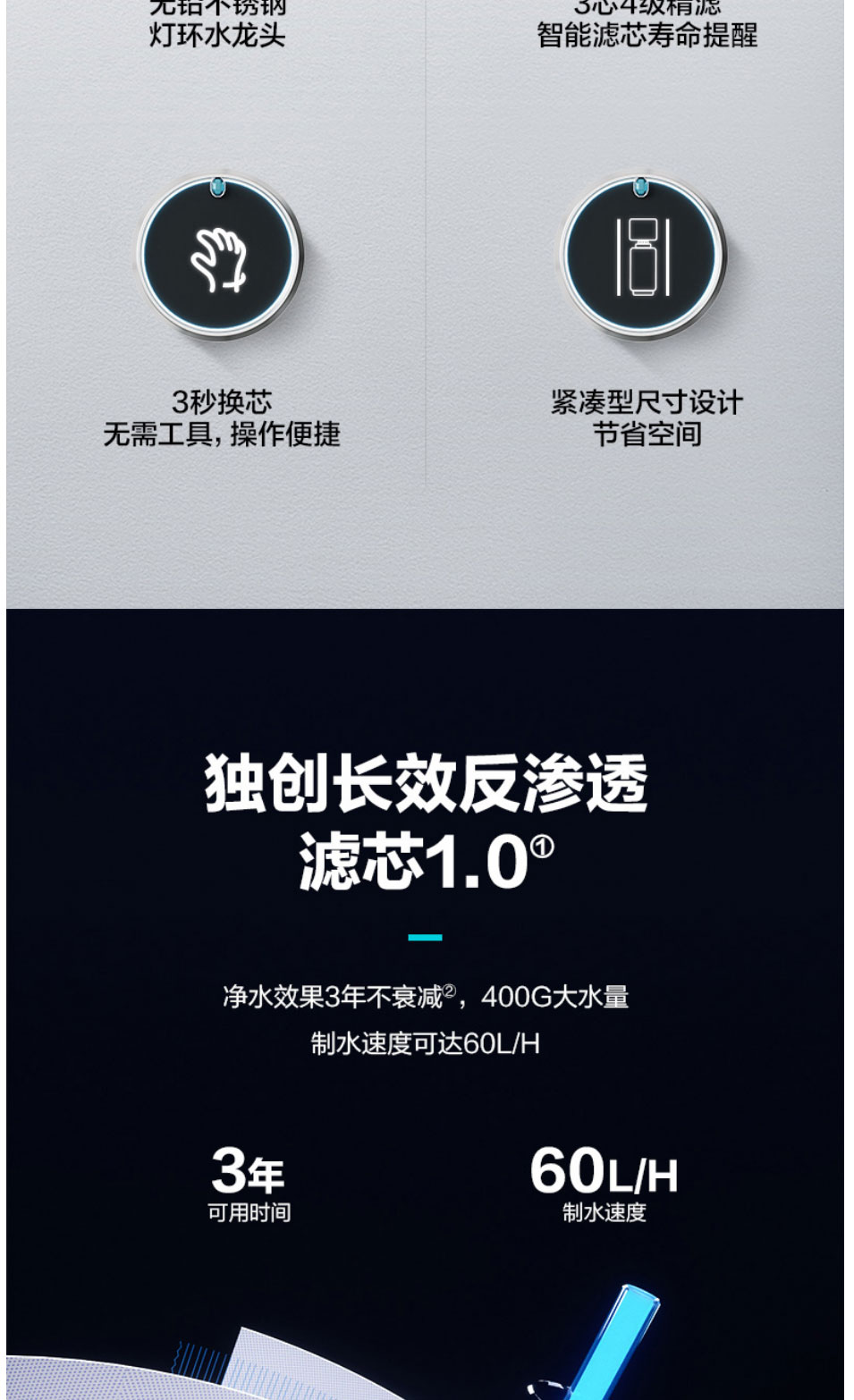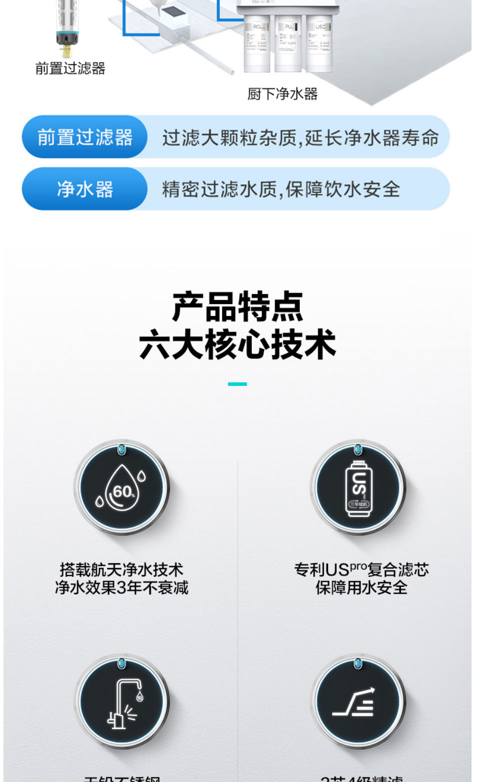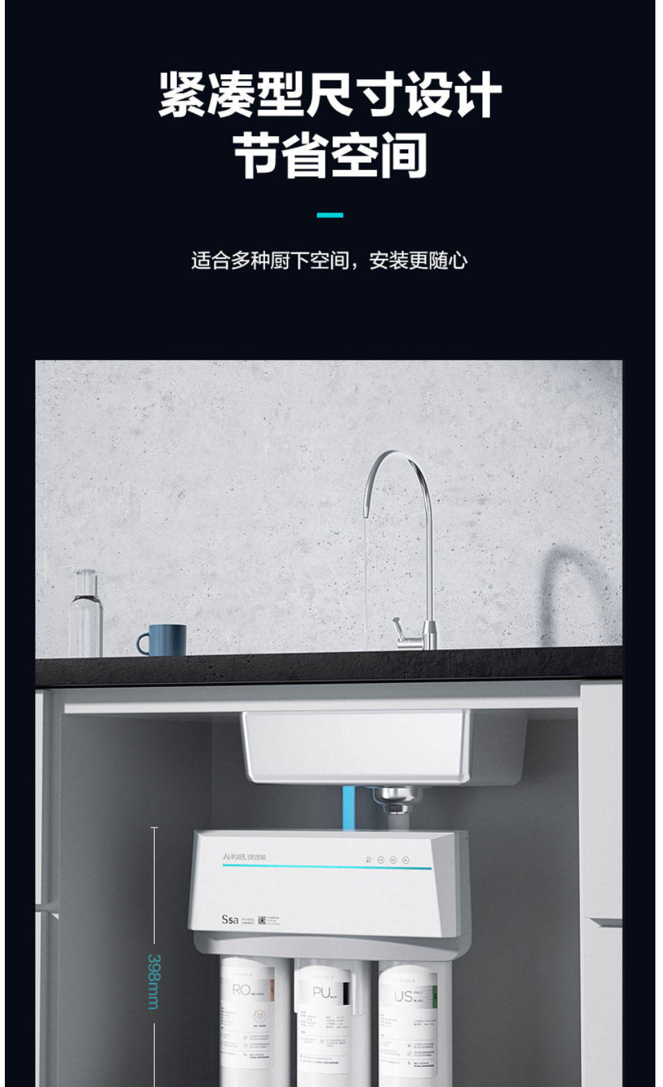 安吉尔(Angel)净水器家用直饮反渗透厨房净水机S5a无桶400G大通量纯水机J2871-ROB60净水器