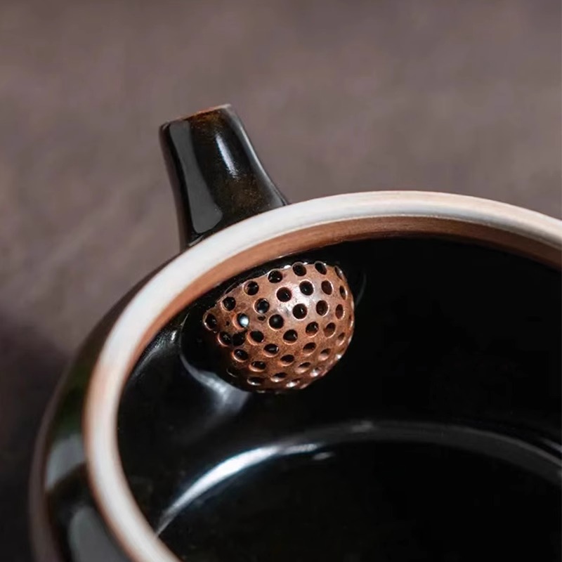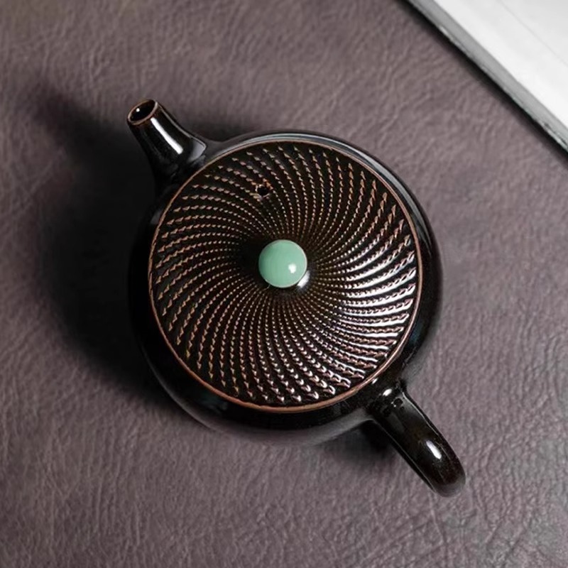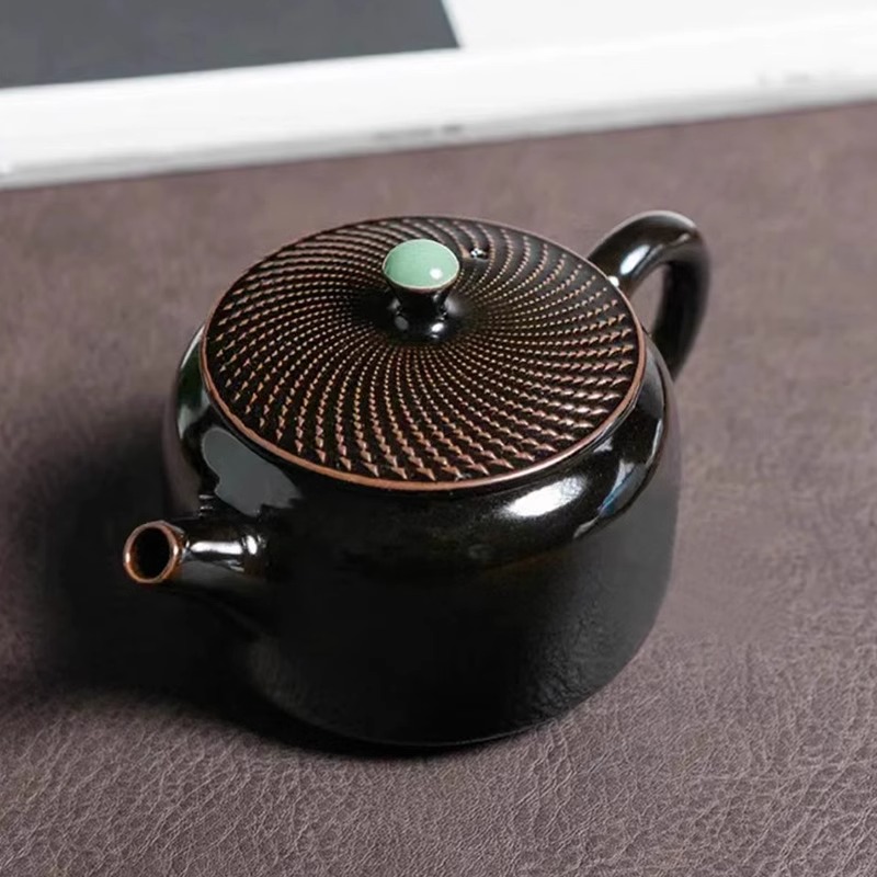 【清仓特惠7.5折,仅2个,无货退款】窑青瓷跳刀黑釉茶壶项世豪纯手工泡茶壶陶瓷乌金釉高端茶具本土斋-墨玉玉珠壶200ML