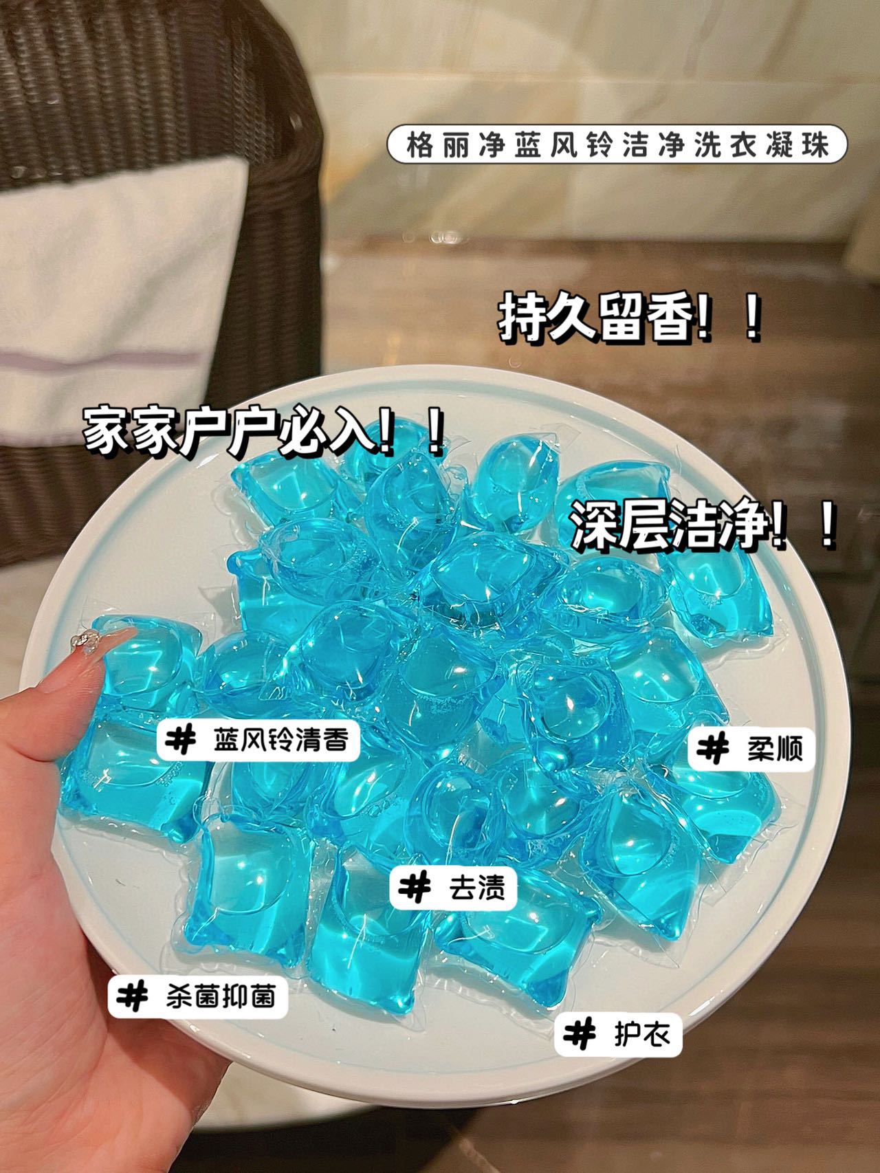 「拼团同款!19.9到手100颗」蓝风铃盒装洗衣凝珠 一盒100颗香氛香水味留香浓缩植物提取洗衣液居家日用