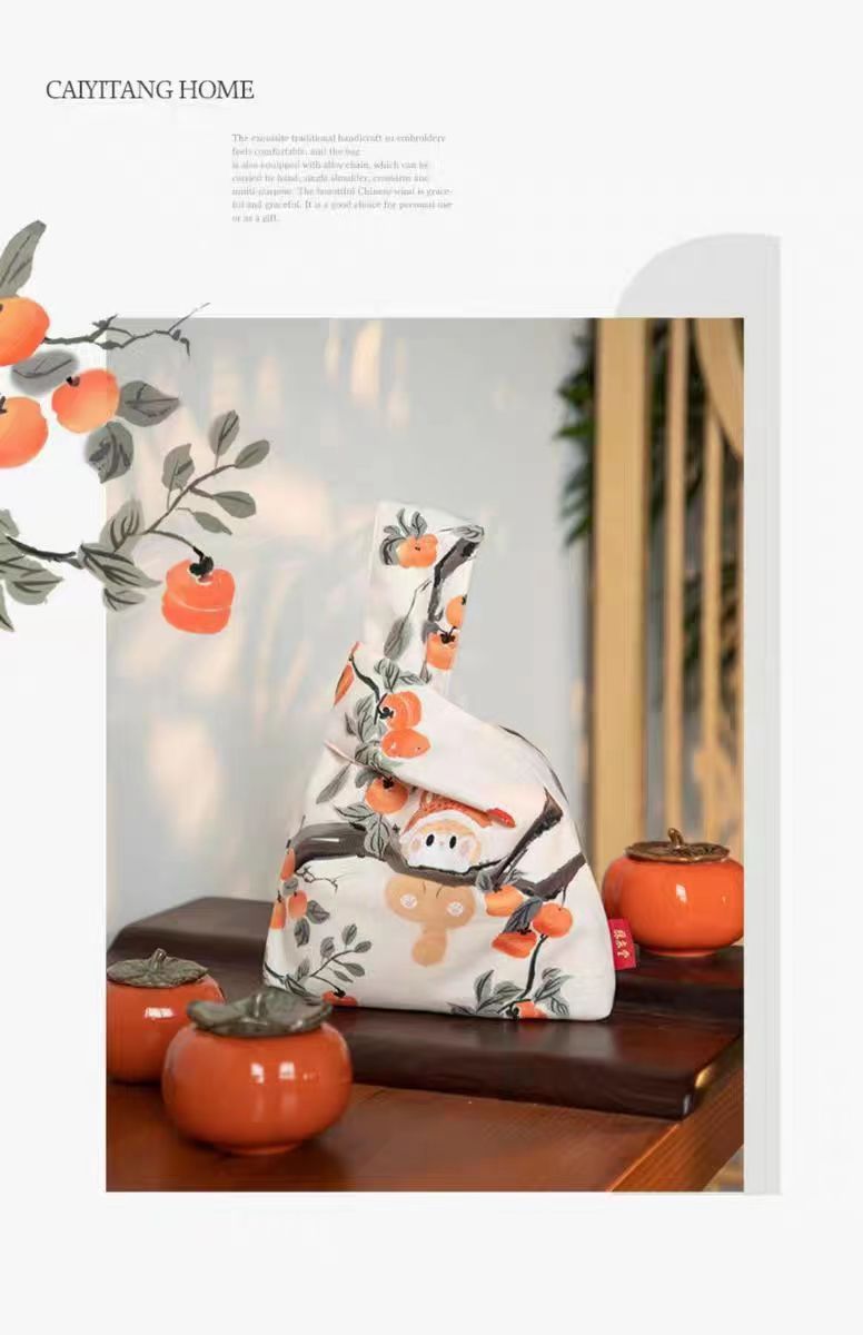 「数款可选!国风手腕包」国风柿子猫咪手挽包手腕包手提手拿包女手机零钱遛弯包手提收纳袋箱包