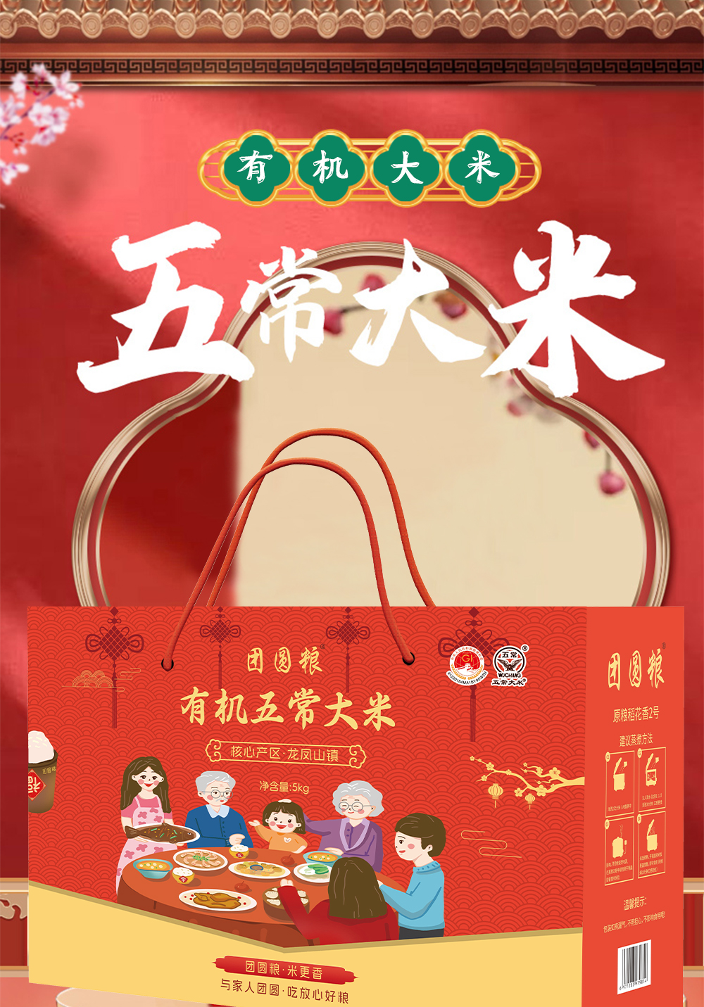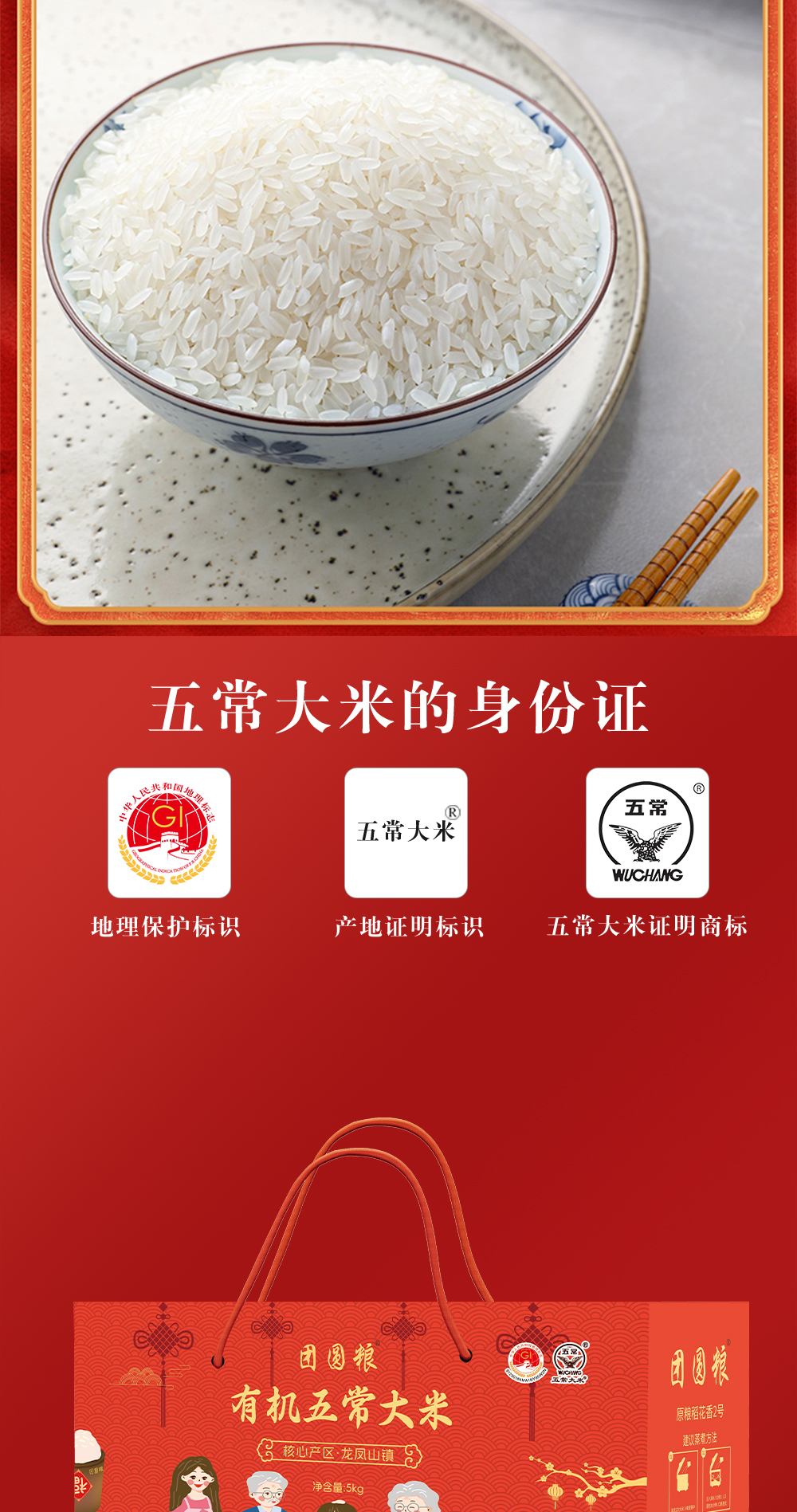 团圆粮有机五常大米礼盒(原粮稻花香2号大米)5KG TY-7【XPTX】