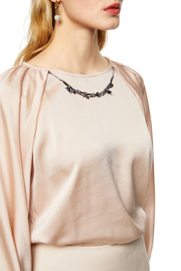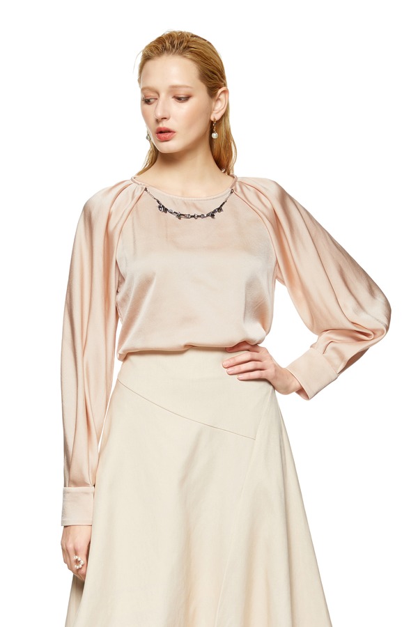 ELLA JADE 项链装饰灯笼袖上衣 8752