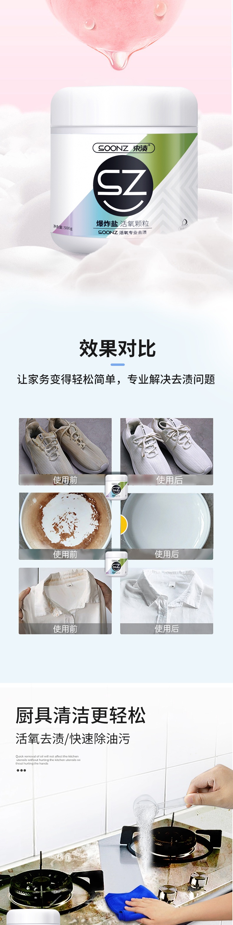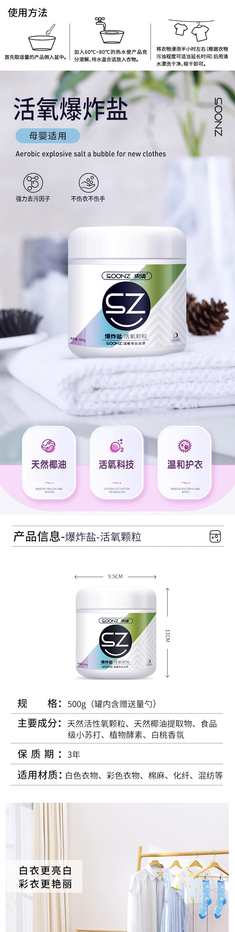 【自营】束渍-爆炸盐-活氧颗粒(500g)彩漂去渍活氧除菌去黄
