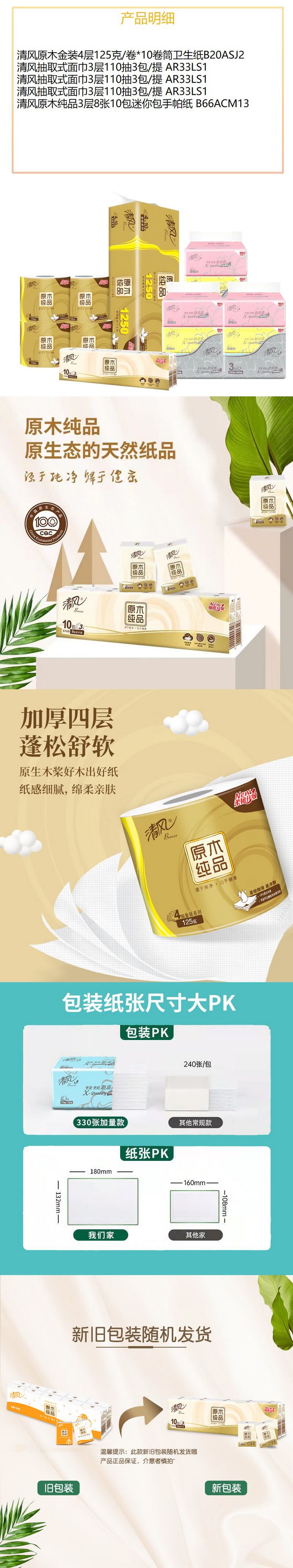 【自营】清风 家庭纸品礼包 12卷+19包 纸巾卷纸手帕纸