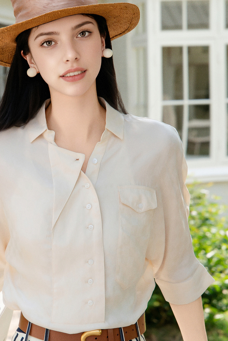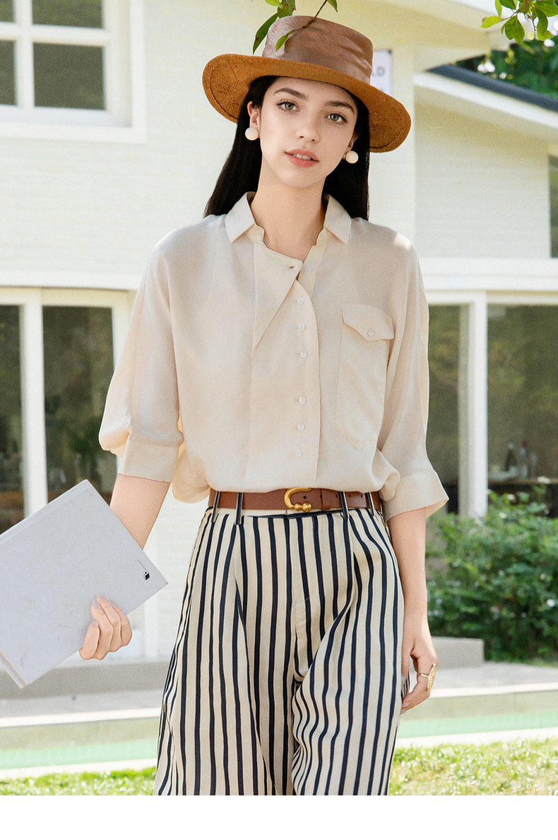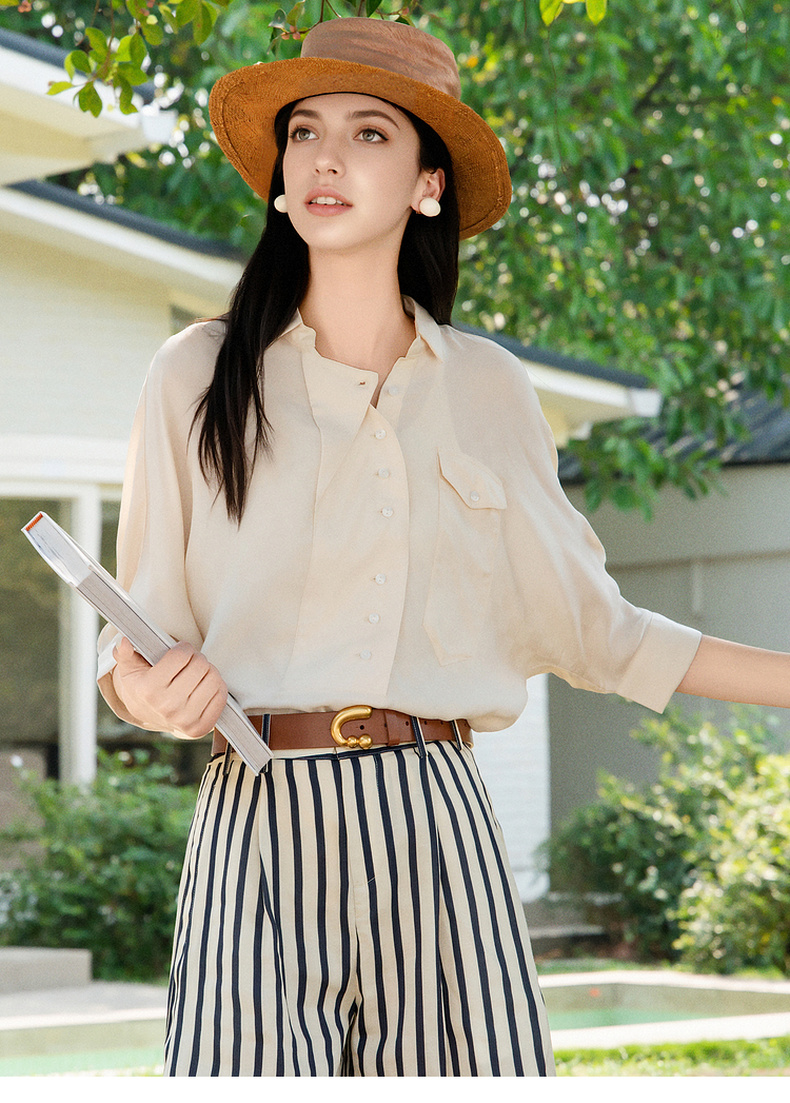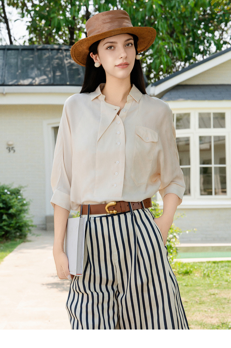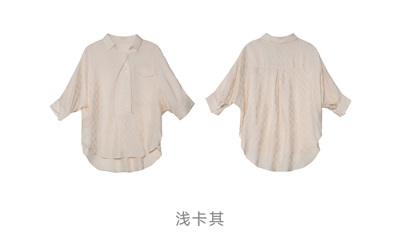 谜底大廓形衬衫分袖女2025夏季新款通勤提花中长款衬衣256MC6263