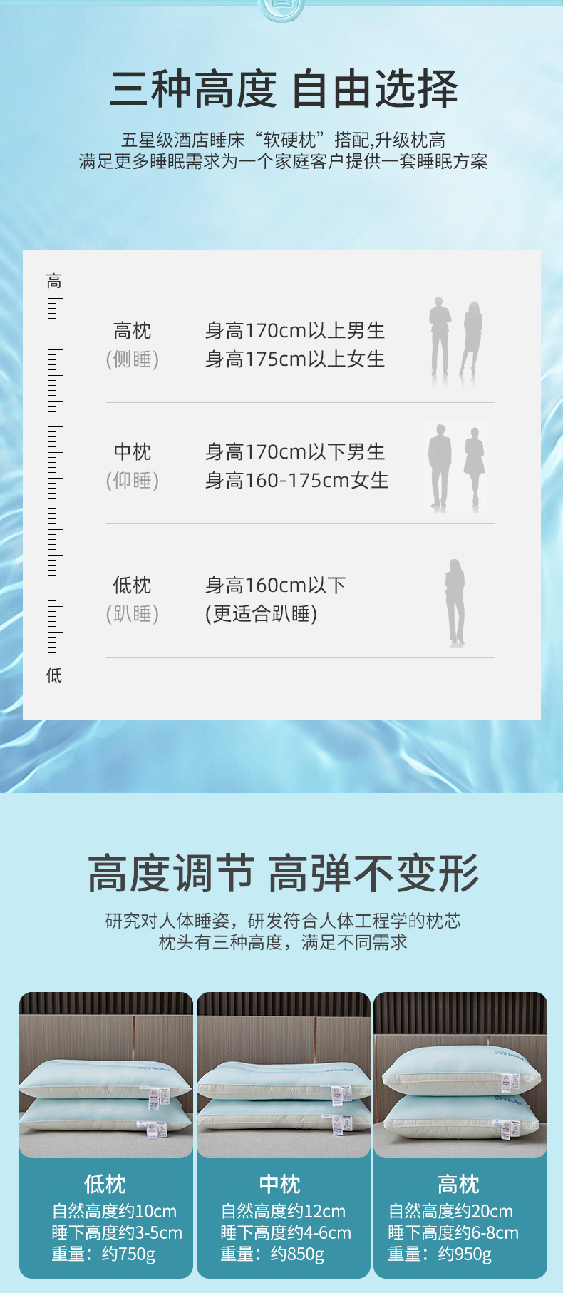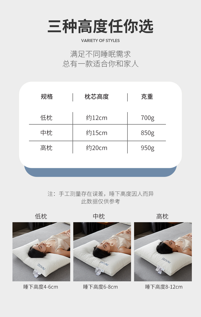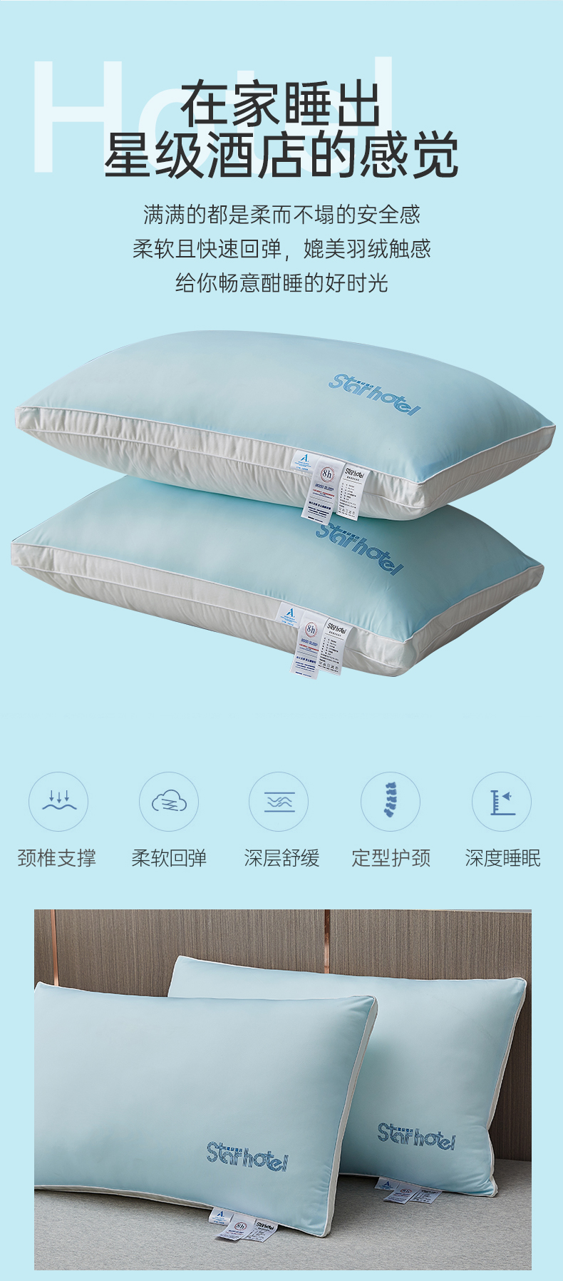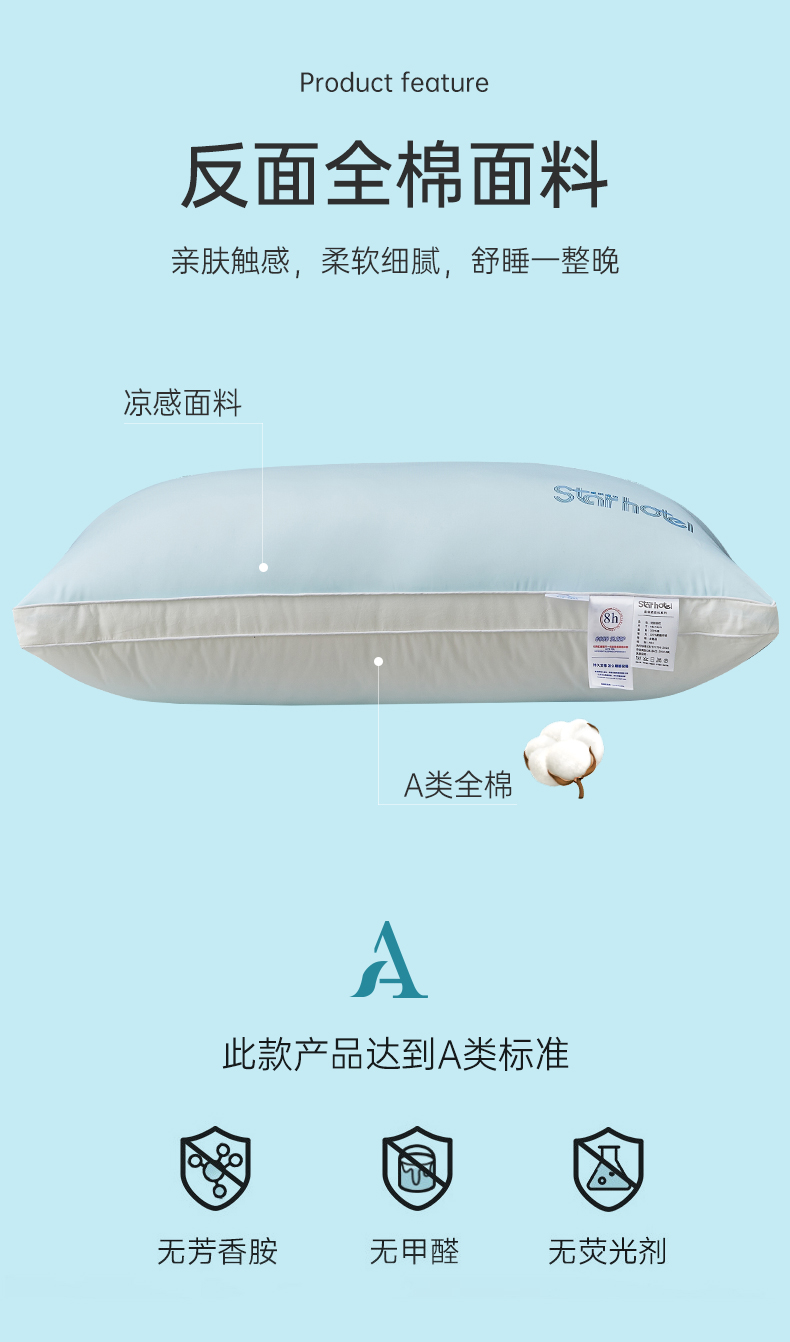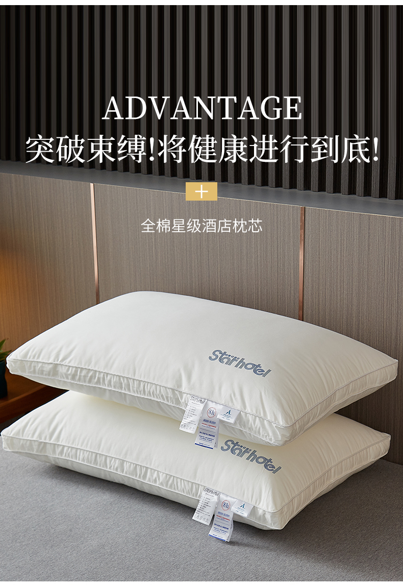 自然醒A类全棉星级酒店凉感枕头枕芯一对套家用护颈椎助睡眠酒店专用成人高低枕头芯XK