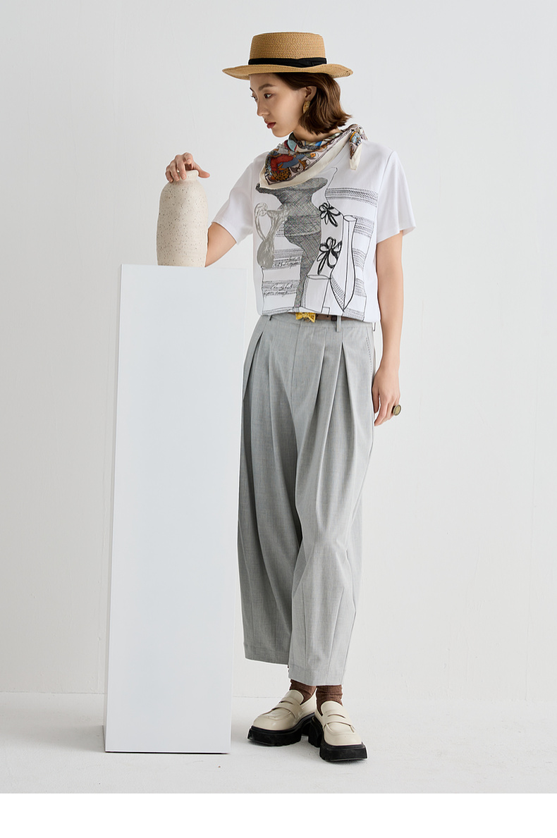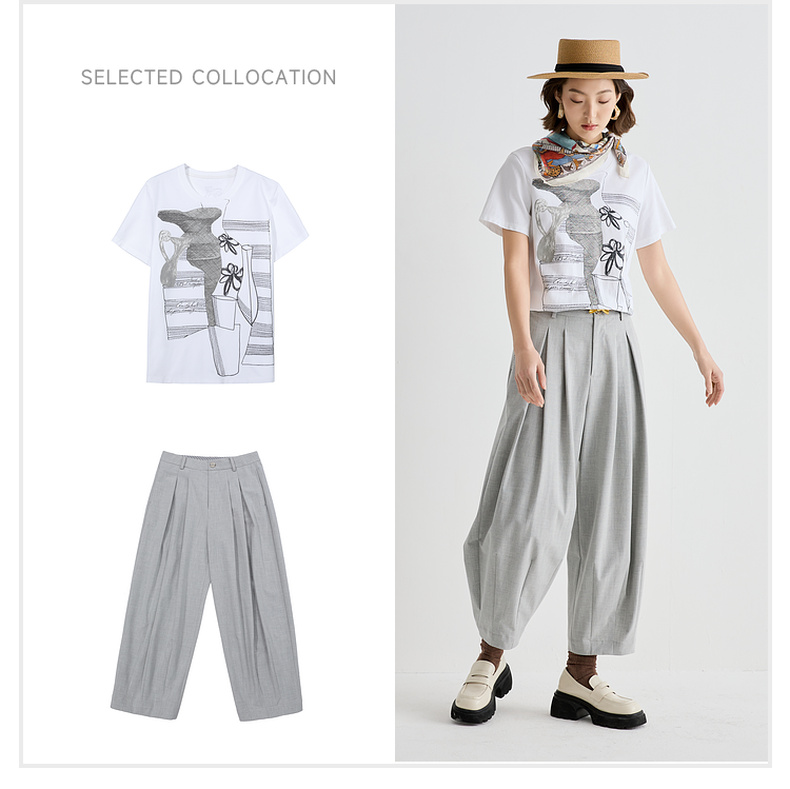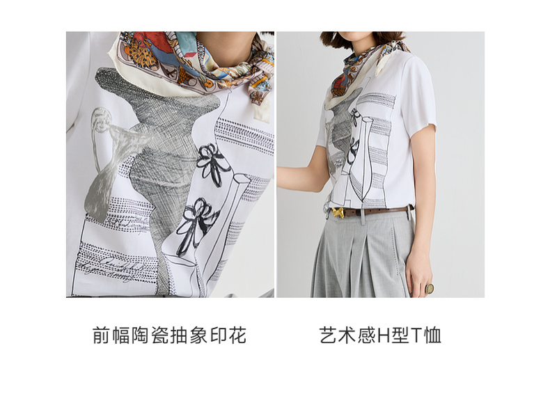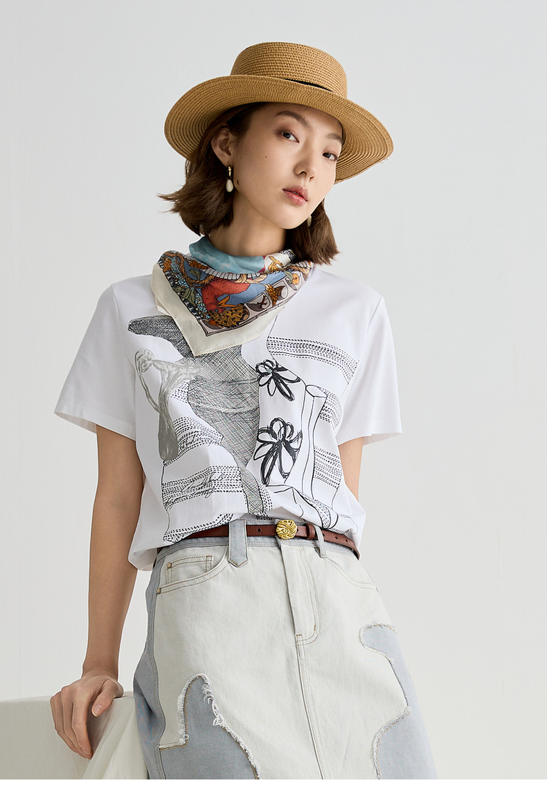 谜底T恤短袖女2025夏新品休闲日常印花宽松H型中长上衣252MT0528