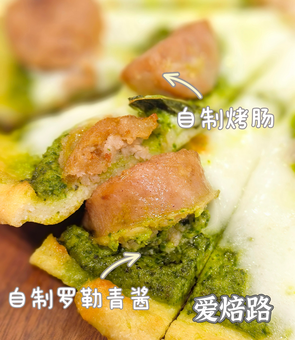 配料表:杏仁粉,洋车前子壳粉,橄榄油,赤藓糖醇,酵母,意大利原制干酪,自制纯猪肉脆皮烤肠,罗勒叶,松子,大蒜,海盐,泡打粉。