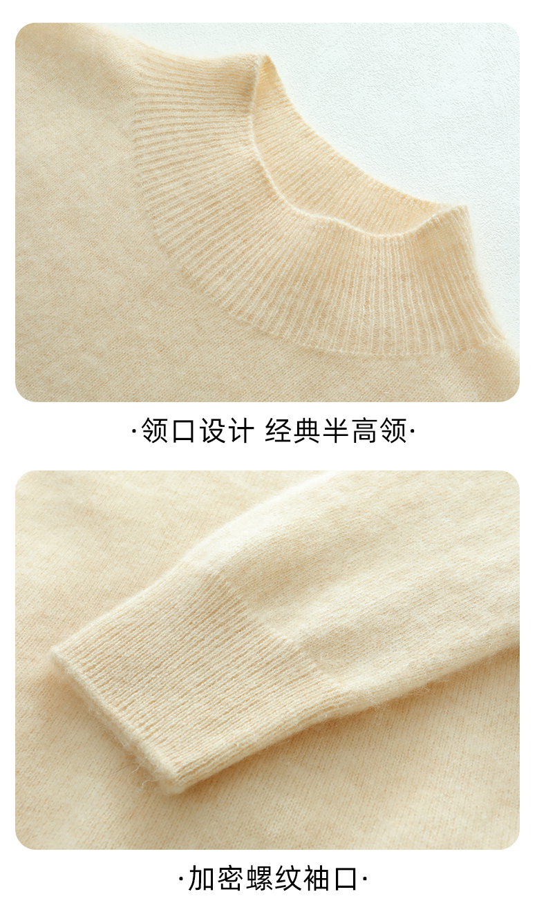 【清河羊毛羊绒专场】鹿展514 女款半高领羊绒衫 100%山羊绒 商品图4