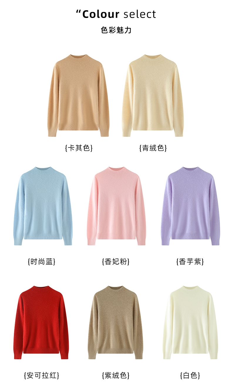 【清河羊毛羊绒专场】鹿展514 女款半高领羊绒衫 100%山羊绒 商品图6