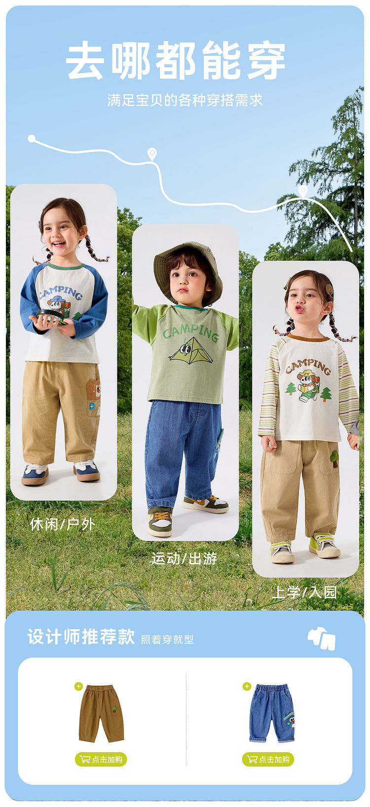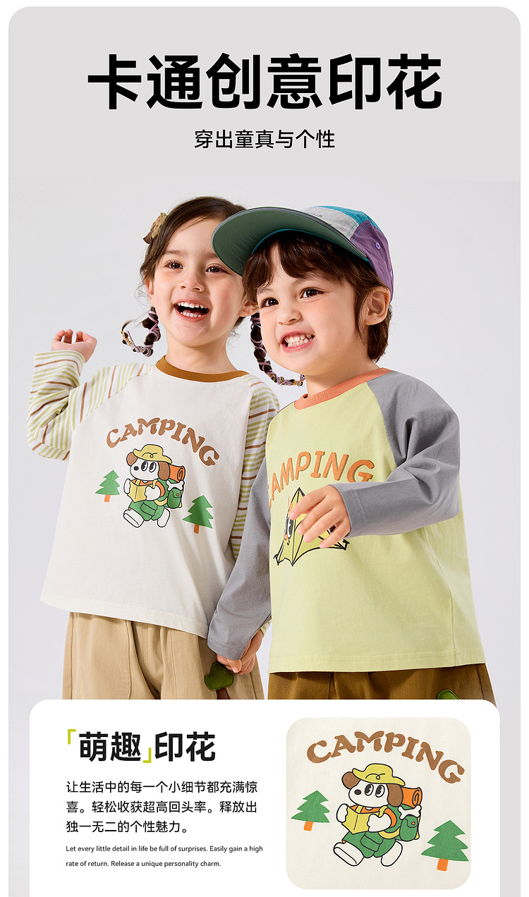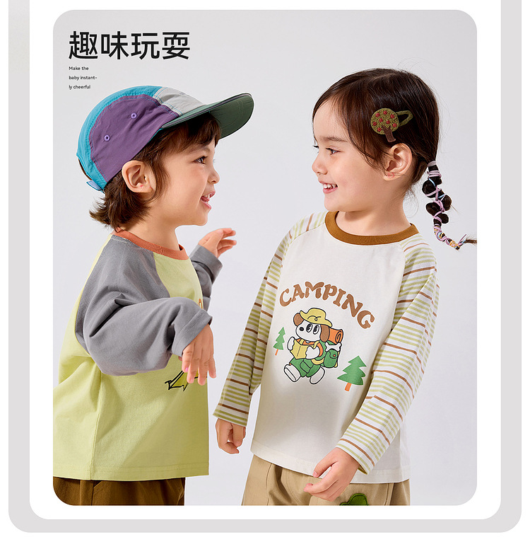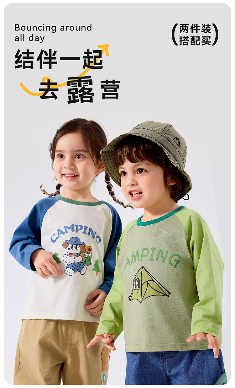 【两件装】嘟嘟家儿童纯棉T恤秋季新款 男女童打底衫秋装