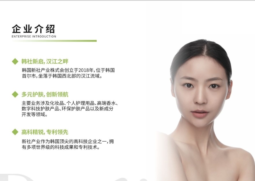 韩国新社产业株式会社2018年创立于首尔汉江流域,作为顶尖高科技企业,业务覆盖多元护肤领域,手握世界级科技🏆成果与专利